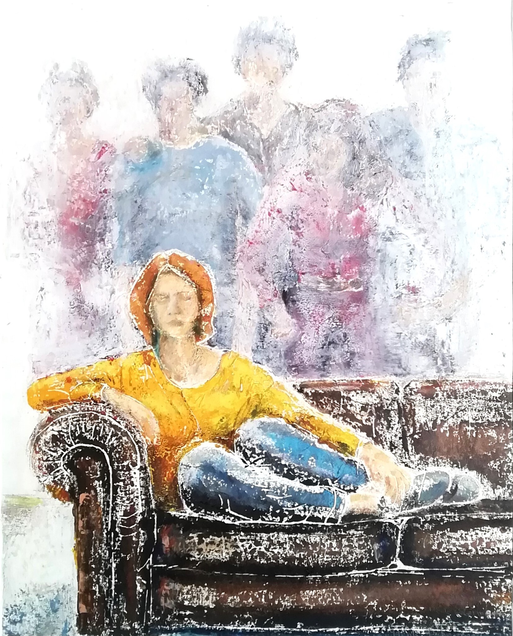 Houtdruk, olieverf, mixed media