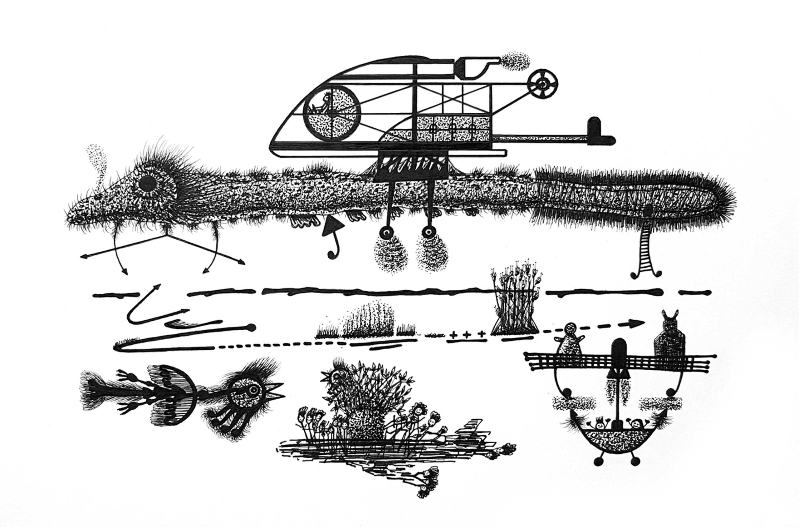 Leven Symbolisch Vogel Zwartwit Kunst Inkt Oostindischeinkt Tekenen Tekenkunst Compositie