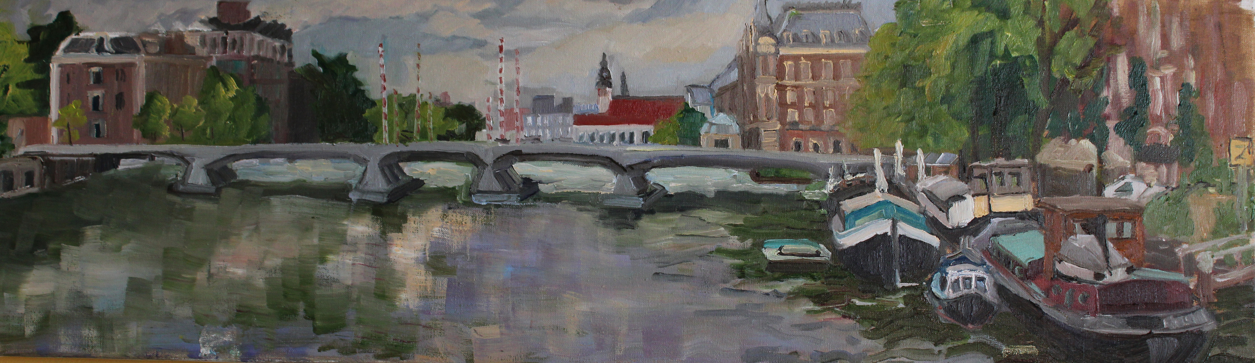 Water Olieverf Amsterdam Stad Boten Amstel Pleinair Cityscape Stadschilderij Stadsgezicht