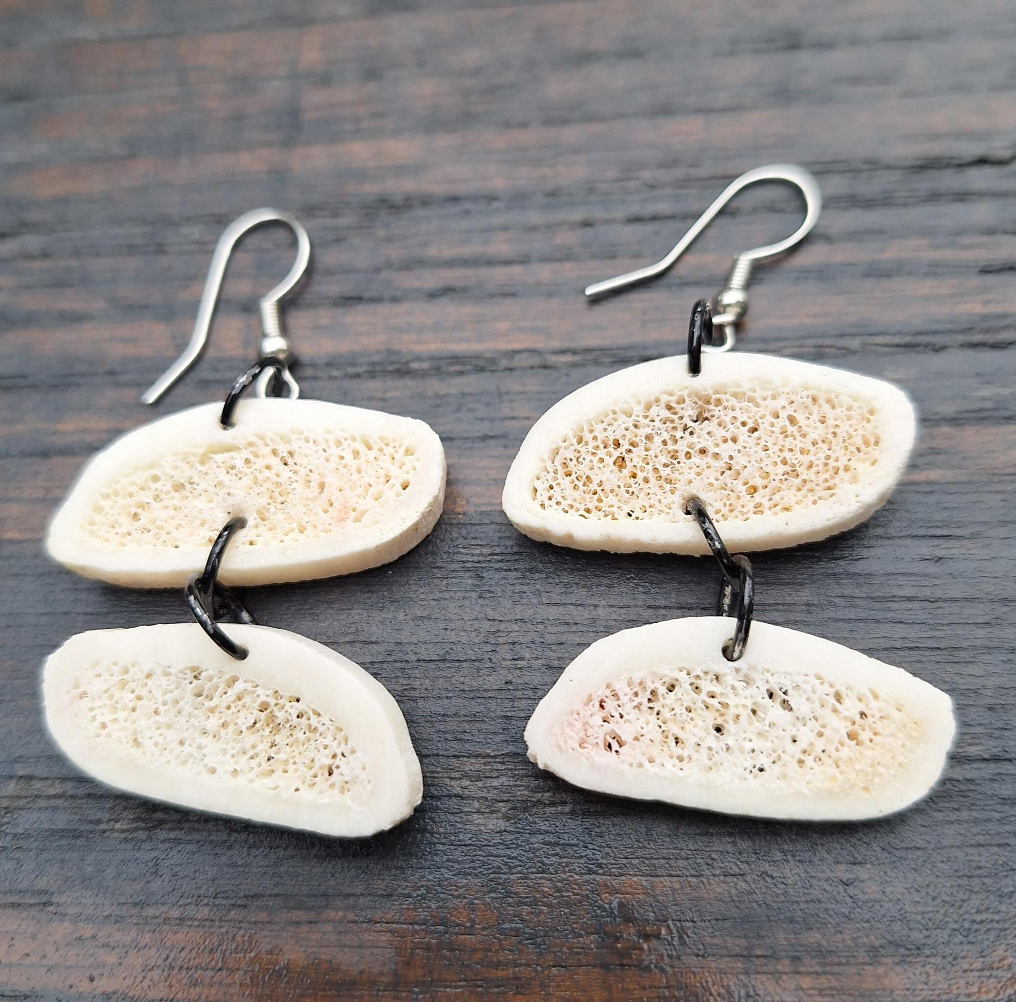 Wit Zwart Van Hanger Oorbel Materiaal Natuurlijk Bot Recycle Oorhanger Oorsieraad Hetty Gool