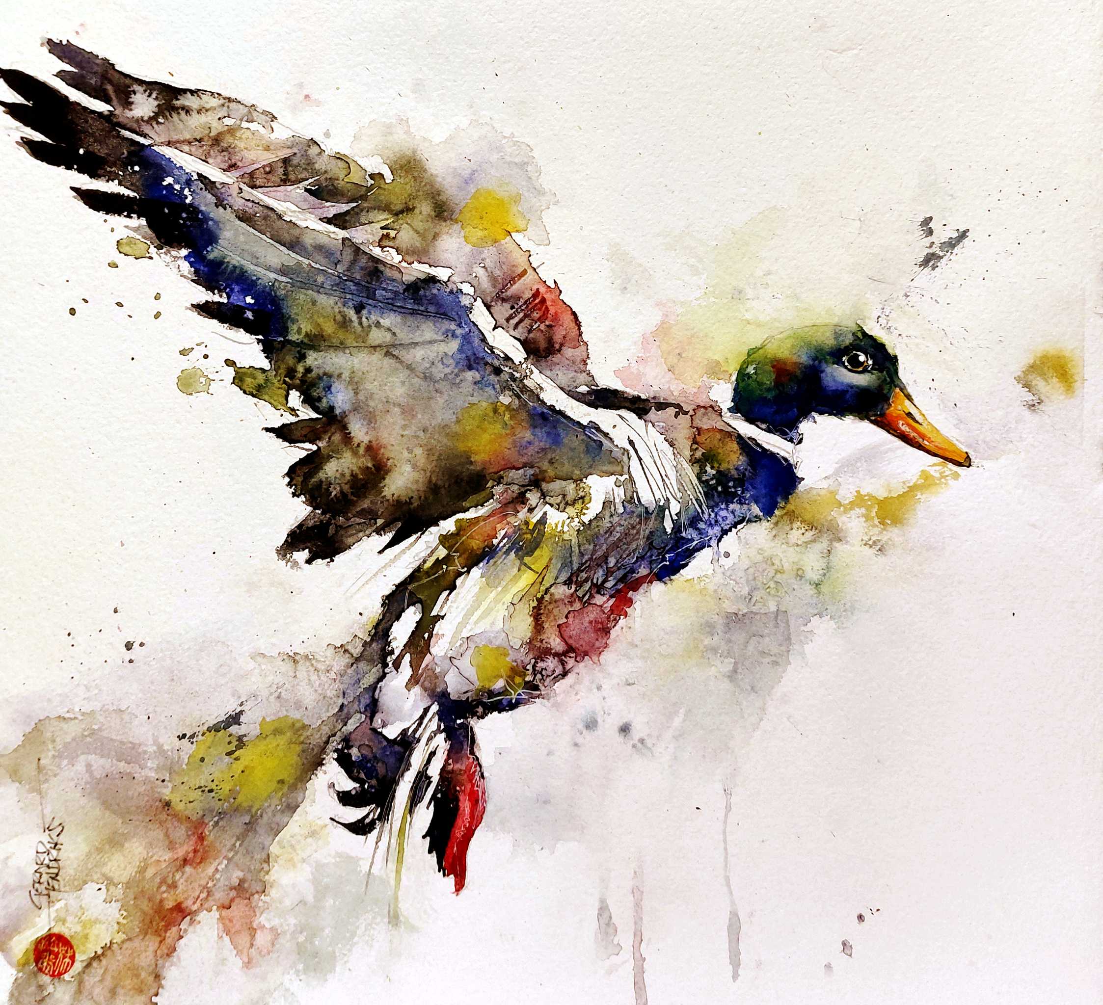 Abstract Wildlife Techniek Kleurrijk Vogels Eend Duck Semi Spetterende