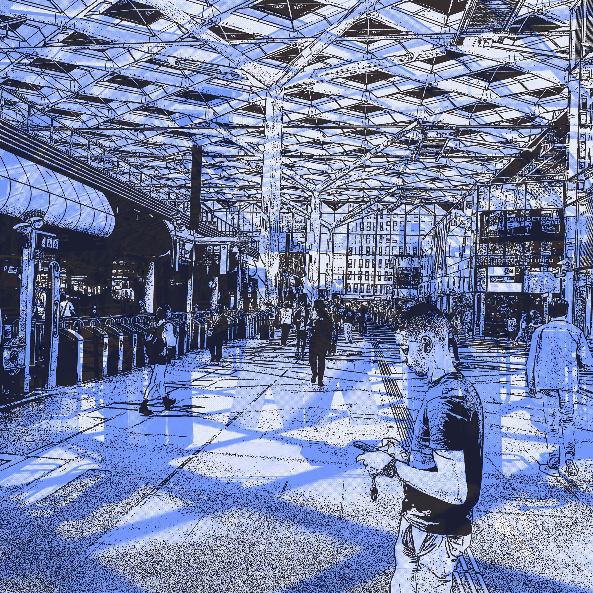 Mensen Grafiek People Tram Urban Stationshal Digital_art_print Den_haag Centraal_station