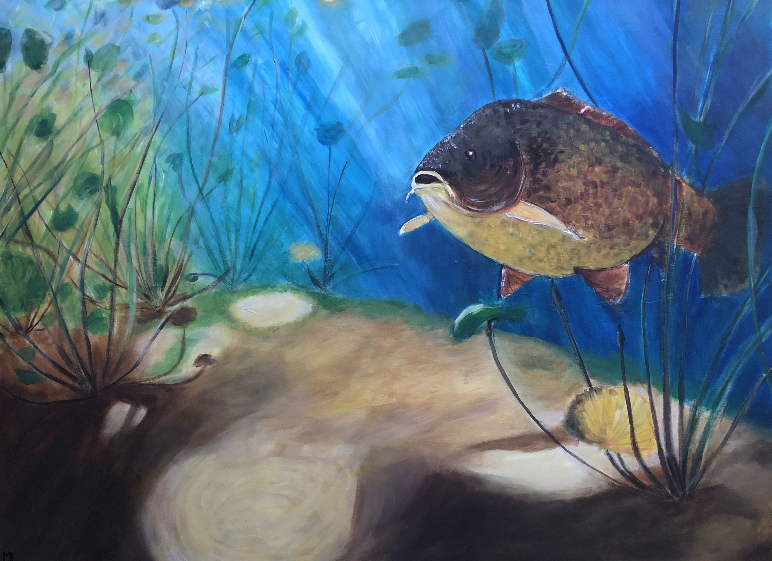 Schilderij in opdracht van een fanatieke karpervisser; mijn zoon!