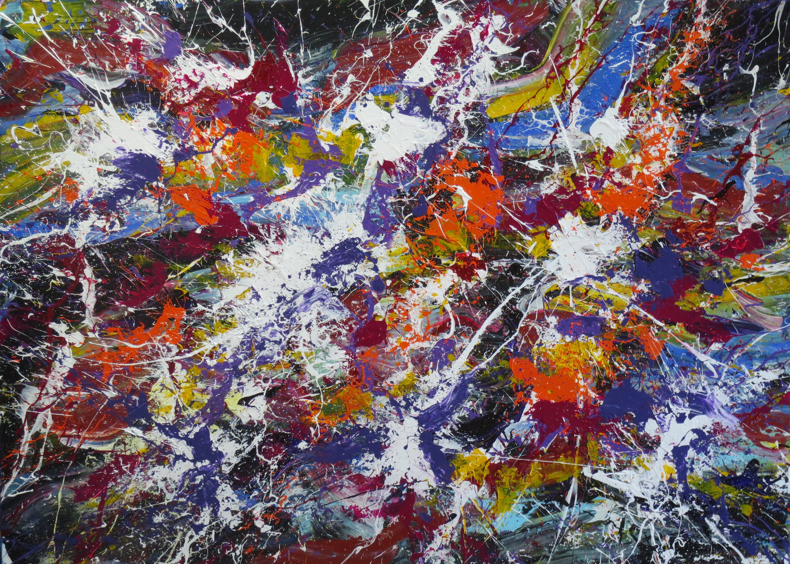 Aluminium frame met linnen doek Geinspireerd door Sam Francis en Jackson Pollock Schilderij kan naar wens worden gedraaid