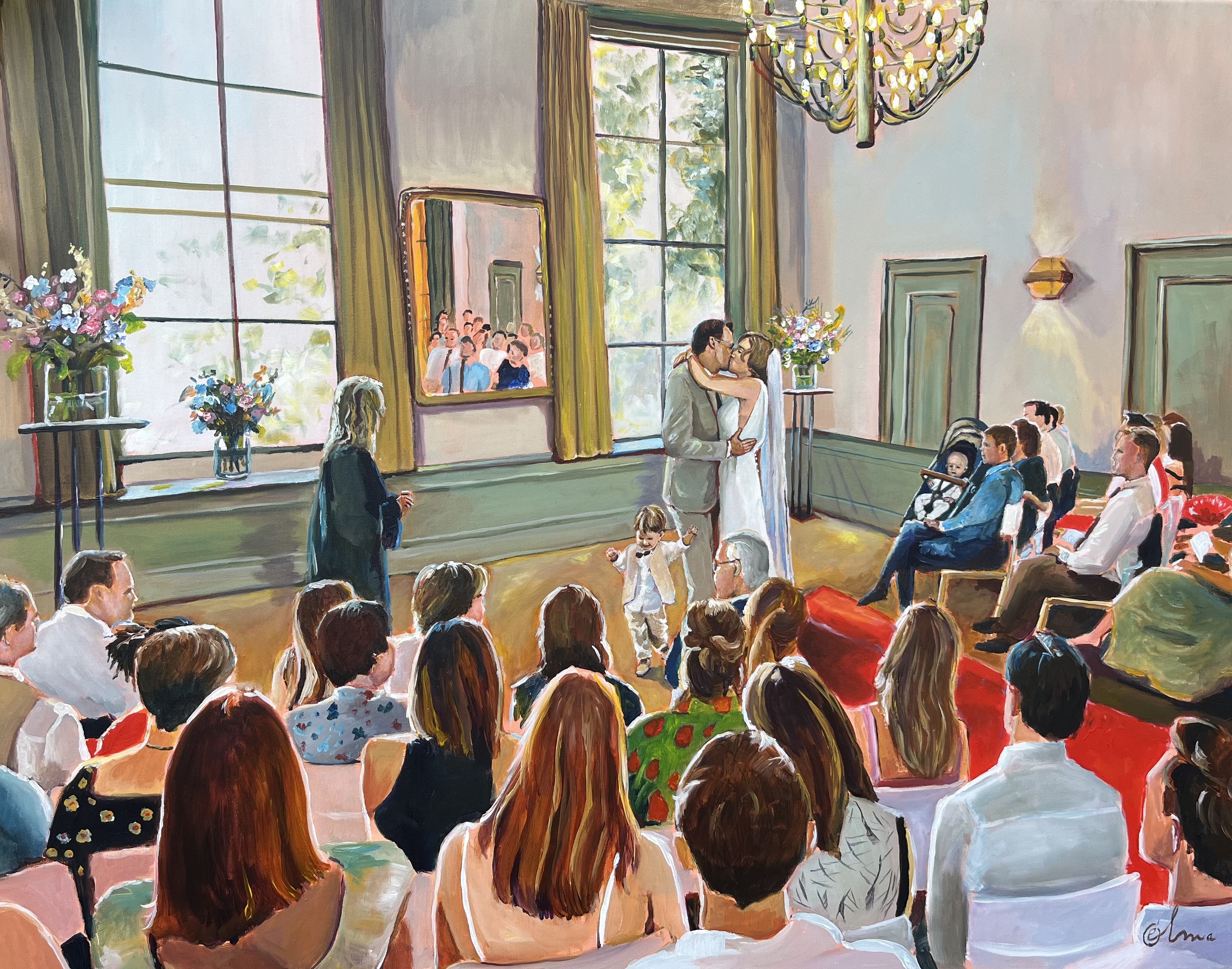 Huwelijk Trouwen Ceremonie Aandenken Herinnering Kinderen Bruidspaar Cadeau Schilderij