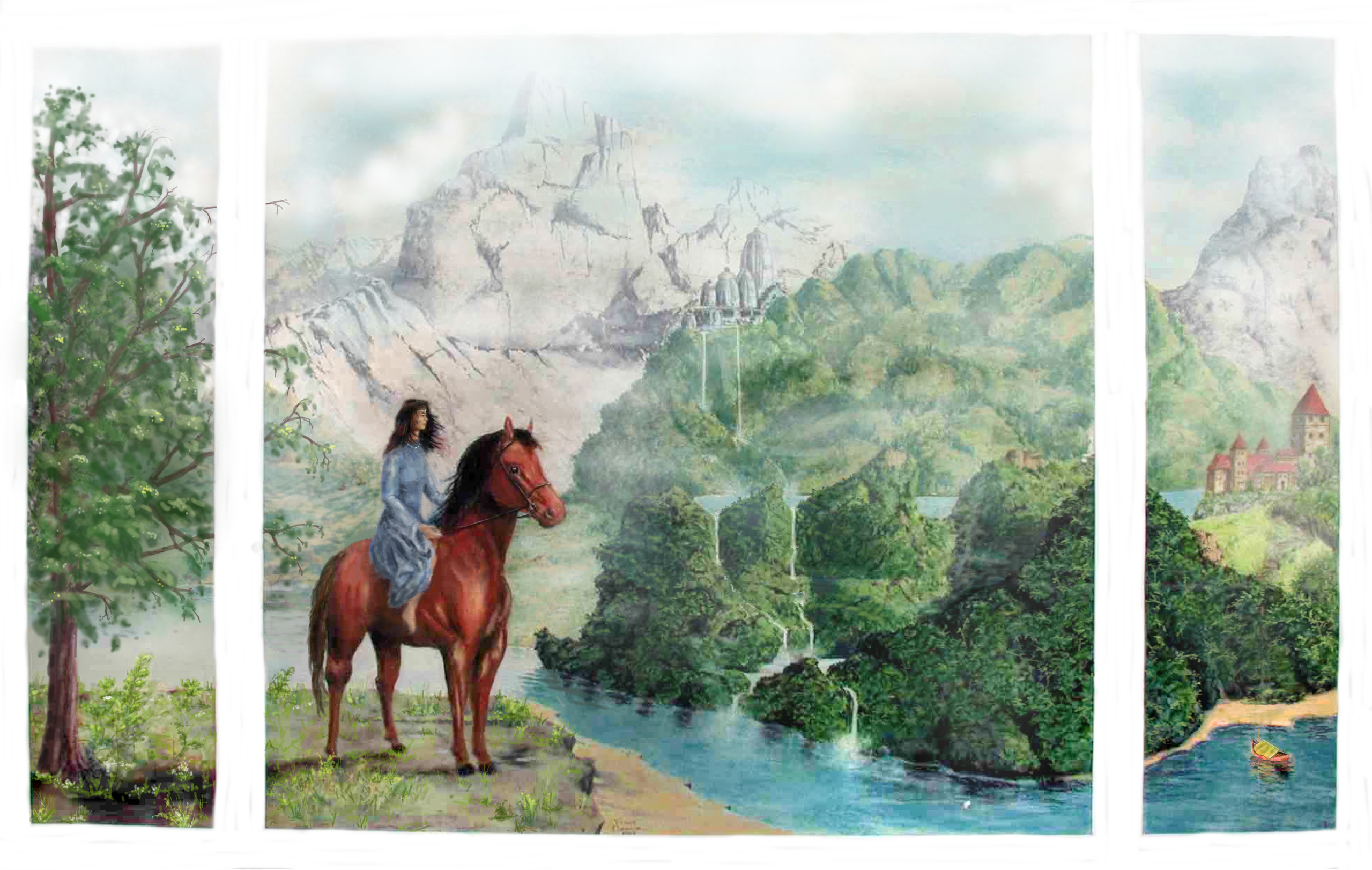 Een conté drieluik van een fantasie landschap uit 1999. Het was één van mijn eerste pogingen met conté krijt.