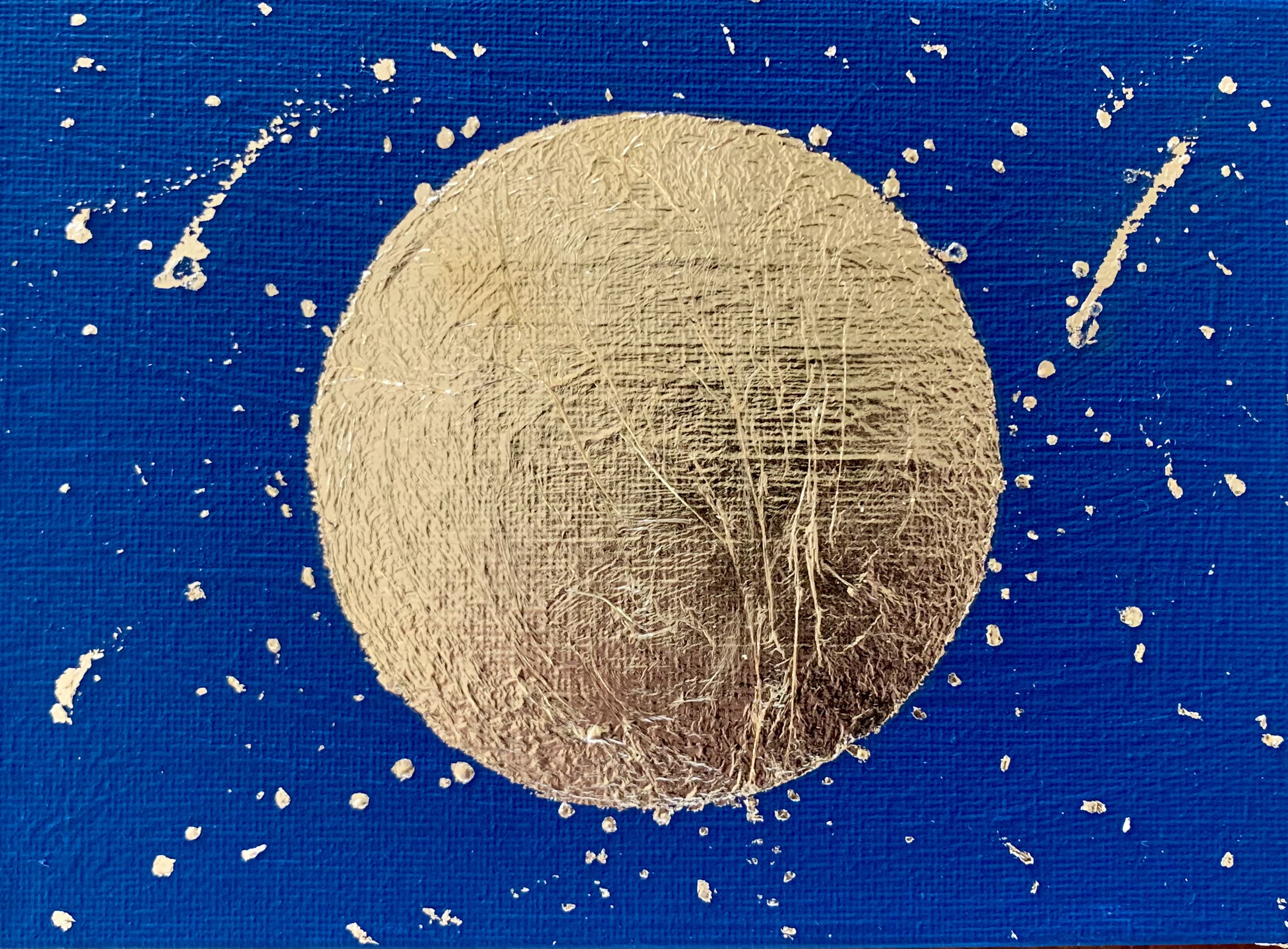 Een hemel vol lichtjes en in het midden de grote gouden maan.