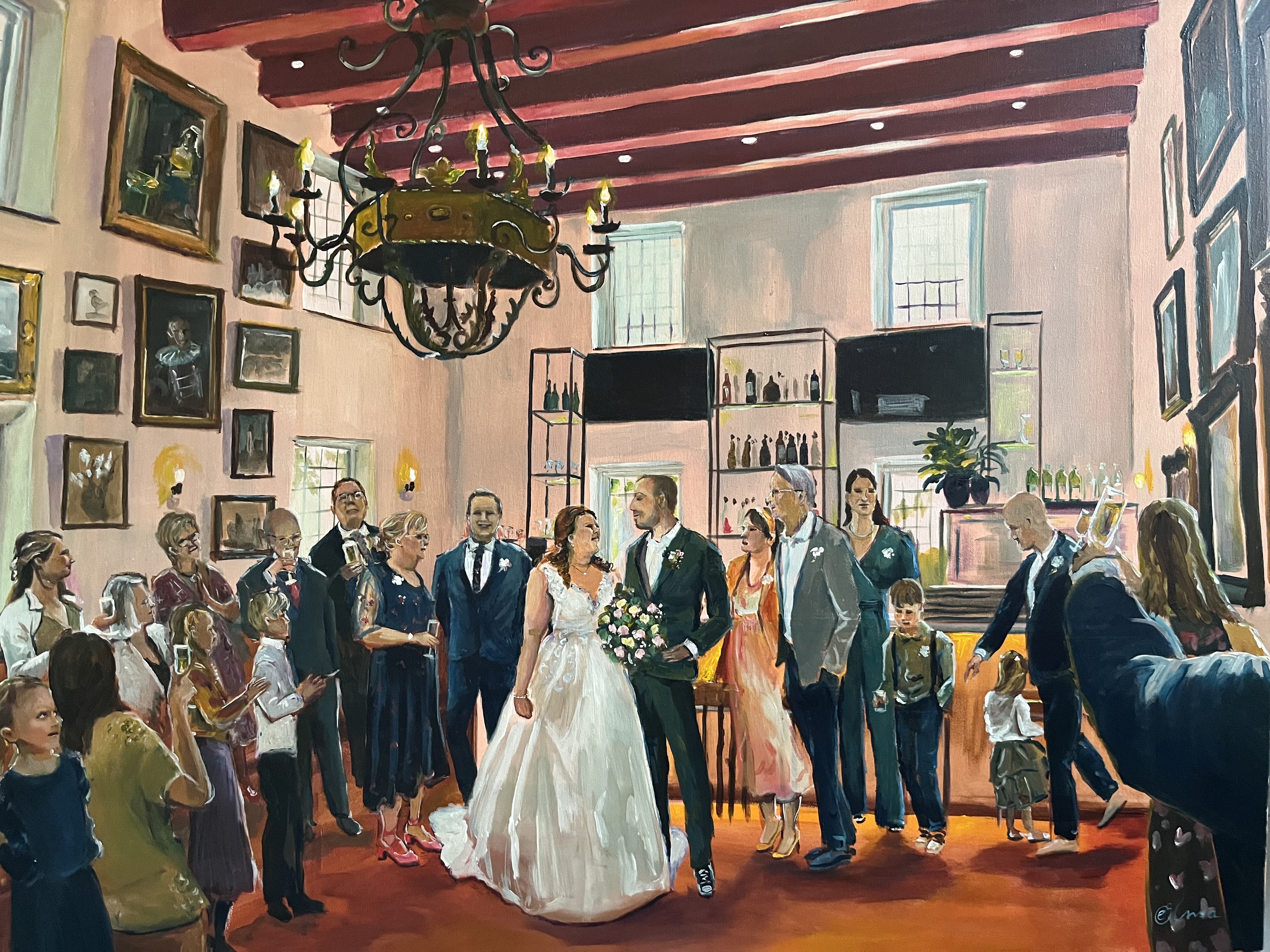 Live Paint Livepaint Schilderij Cadeau Trouwen Huwelijk Bruidspaar Familie