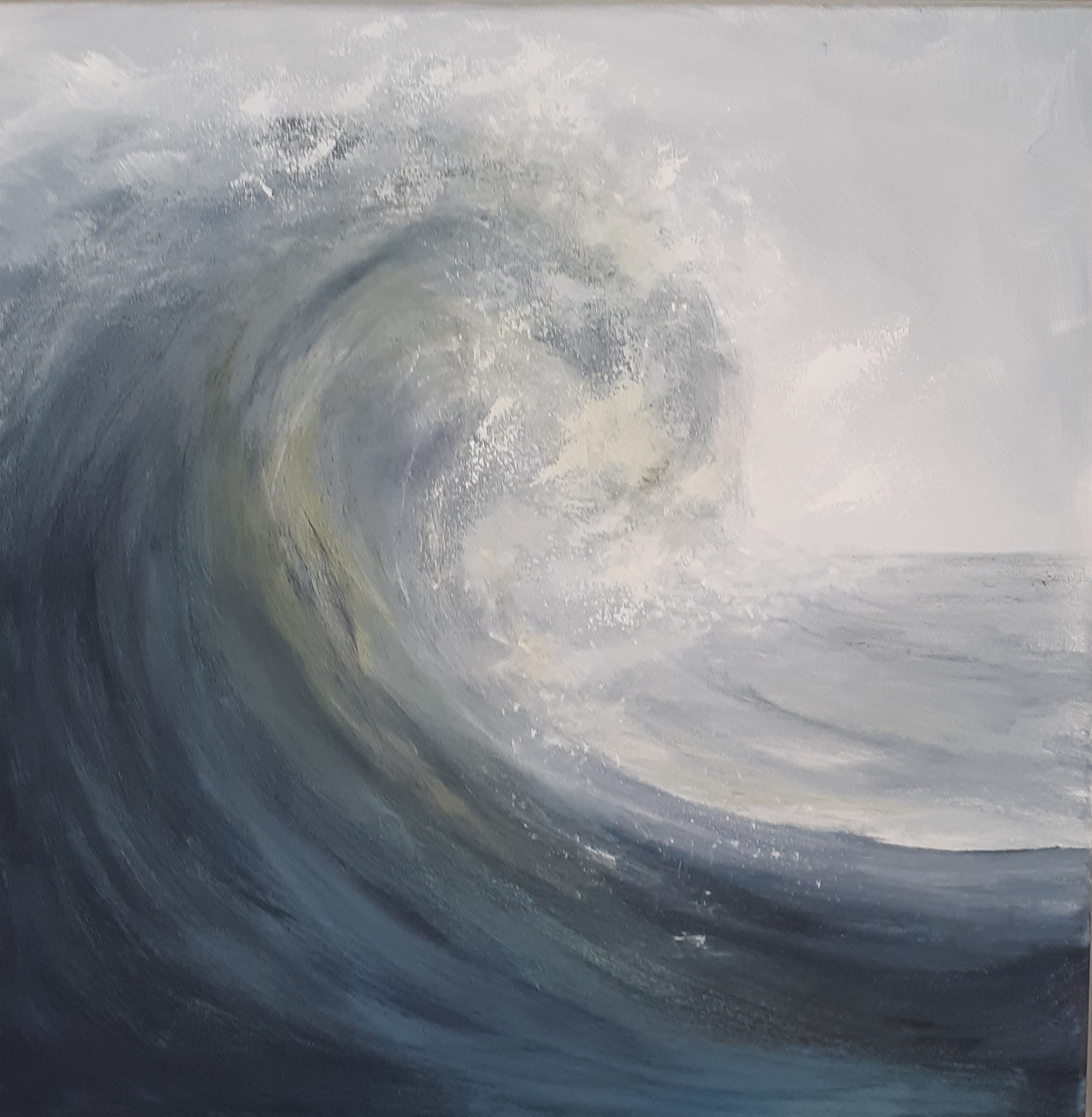 Mijn werk zijn herinneringen ,hoe voelde het, wat zijn de kleuren... Als ik aan een nieuw doek begin weet ik niet waar het zal eindigen, en dat is juist het spannende .het zoeken ,het proberen ,maar ook vaak het gevoel hoe nu verder. Soms zijn het dreigende luchten ,een wilde branding ,maar ook een heel rustige zee ,die de leegte en rust weergeven .De ruimte en de lucht van het wadden gebied in noord Groningen heeft diepe indruk op mij gemaakt en dat is te zien in mijn laatste schilderwerken.