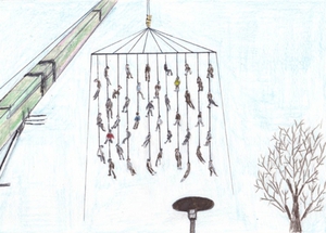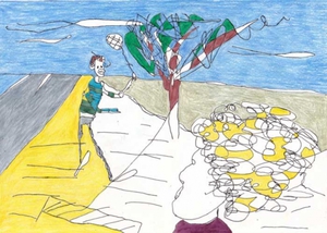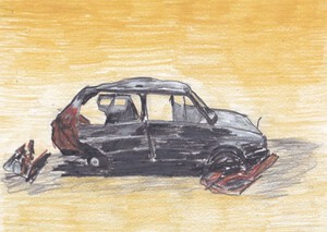 Ali Heydar (1992, Deir-ez-Zor) maakt sinds 2012 samen met Michiel Burger (1983, Yamoussoukro) tekeningen rond herinneringen aan een niet gespecificeerd conflict in het Midden-Oosten.