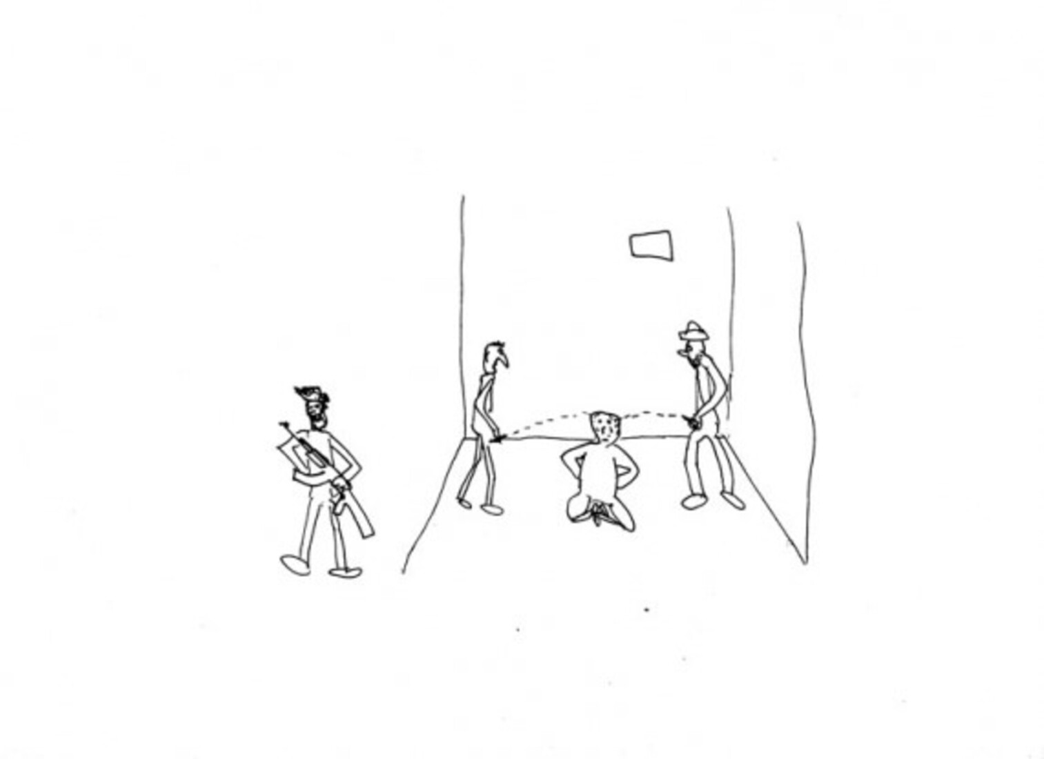 Ali Heydar (1992, Deir-ez-Zor) maakt sinds 2012 samen met Michiel Burger (1983, Yamoussoukro) tekeningen rond herinneringen aan een niet gespecificeerd conflict in het Midden-Oosten.