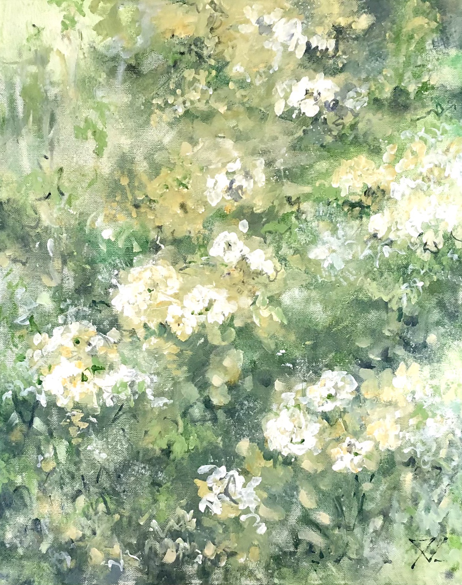 Ochtendweide’ is een teder en bijna meditatief bloemenschilderij, waarin bloeiende vormen baden in zacht ochtendlicht. De kleuren zijn fris en licht als dauw, en roepen het gevoel op van een stille zomerochtend waarin de wereld net ontwaakt. Een semi-abstracte impressie van een bloemrijk veld, gehuld in rust en helderheid. Over het werk: gesigneerd · acryl op canvas · opgespannen op stevig frame · meegeschilderde zijkanten · klaar om op te hangen. Bij vragen neem gerust contact met mij op →
