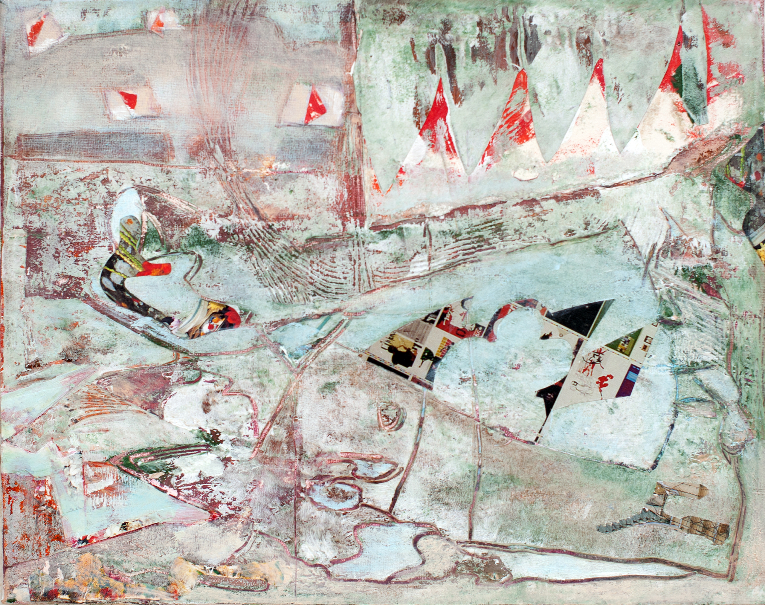 Ik fietste langs het IJsselmeer met al zijn vormen van recreatie op het water. Dit inspireerde mij om deze mixed media collage te maken.