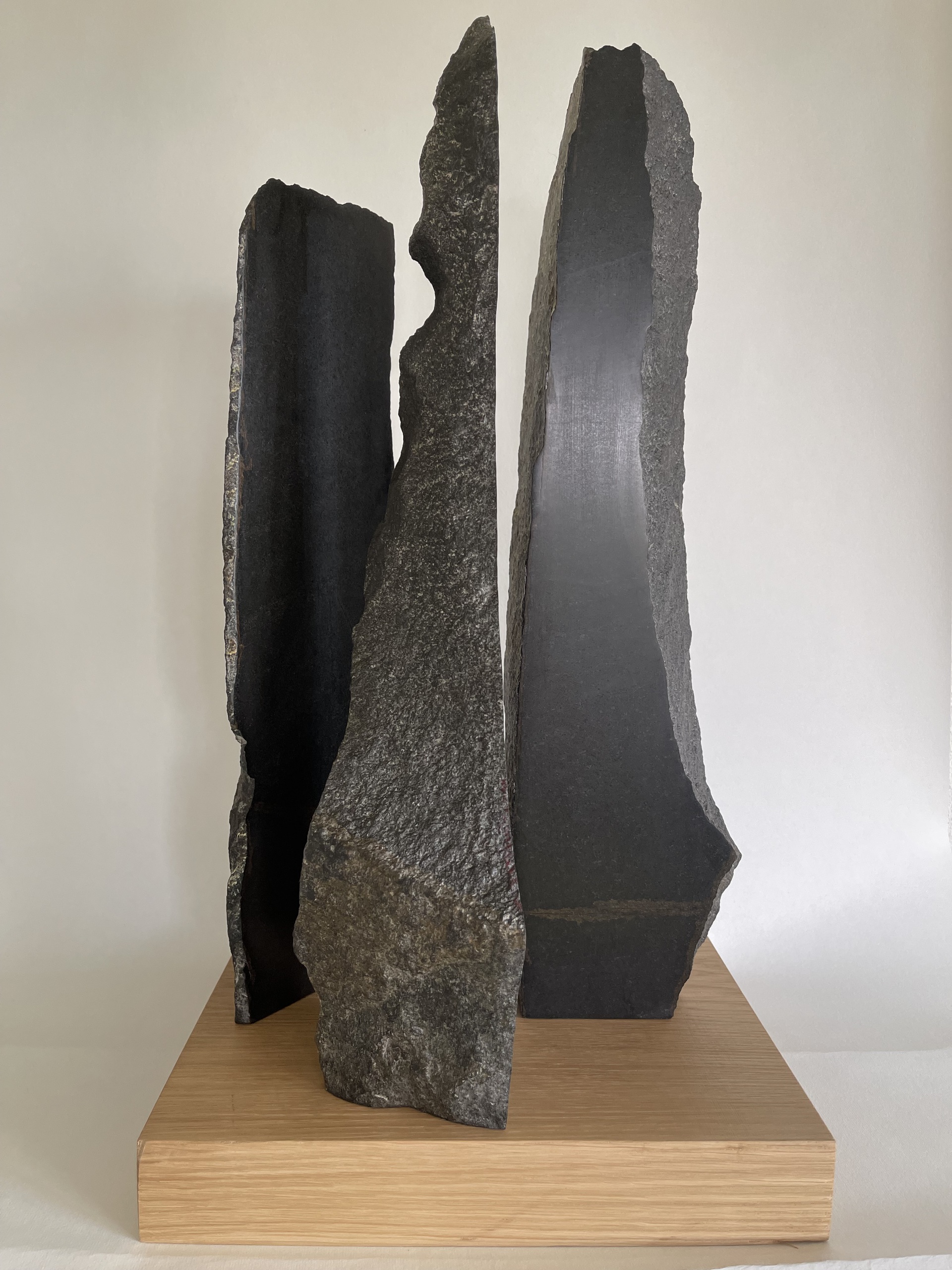 Drie delig beeld in Galastone Black. Gedeeltelijk gepolijst