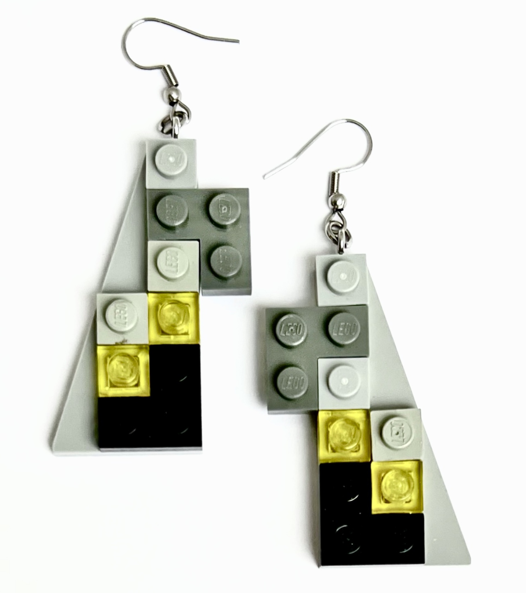 Grijs Kunststof Driehoek Speels Origineel Plastic Rvs Oorbellen Lego Lichtgewicht
