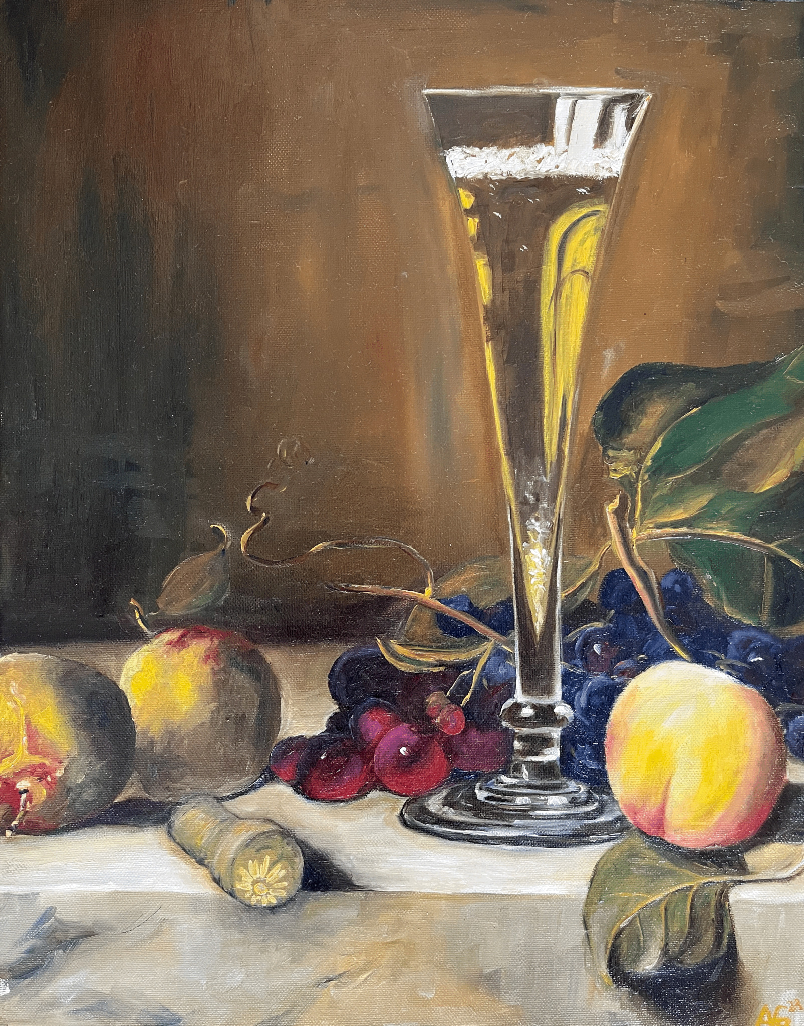 Stilleven Tafel Champagne Druiven Historisch