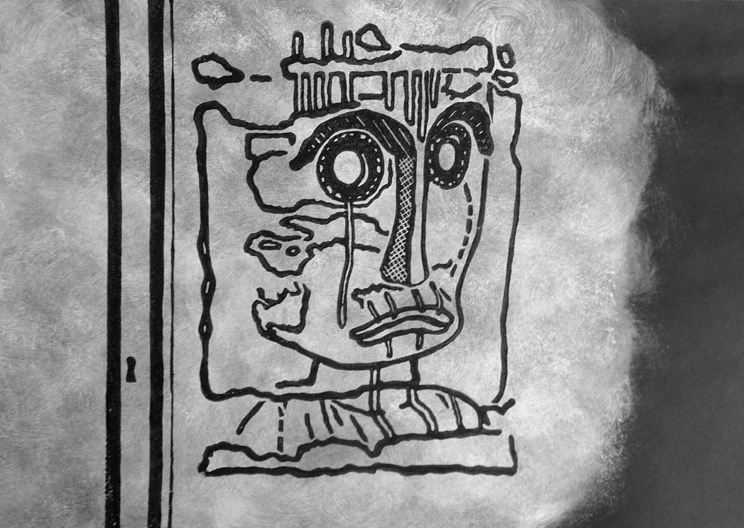 Beeld Museum Cut Lino Blackandwhite Vitrine Houtsnijwerk Linosnede Case Monochrome Linoleumdruk 2020 Kalimantan Dis[play