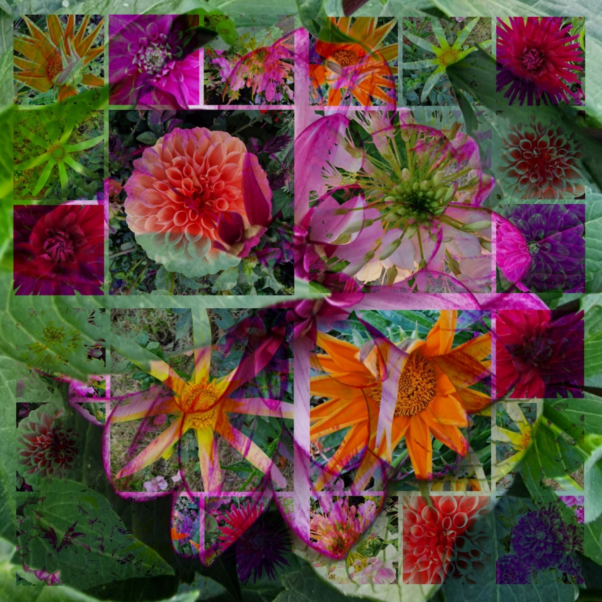 Het stadje Gravelines (F) presenteert zich met mooie 'jardins'. Dit is een colage en is onderdeel van een serie van 4 bloemencollages. Verschillende afmetingen mogelijk.