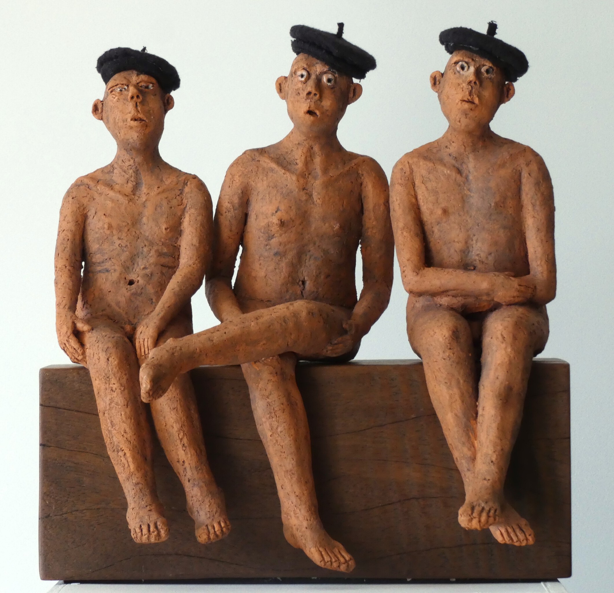 Met de zwarte franse baret worden deze 3 vrienden "echte" copains!
