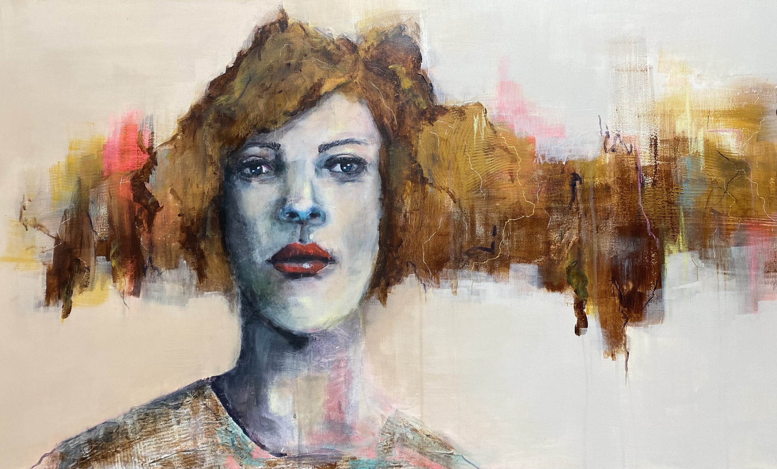 Portret. Mixed media techniek op canvas.