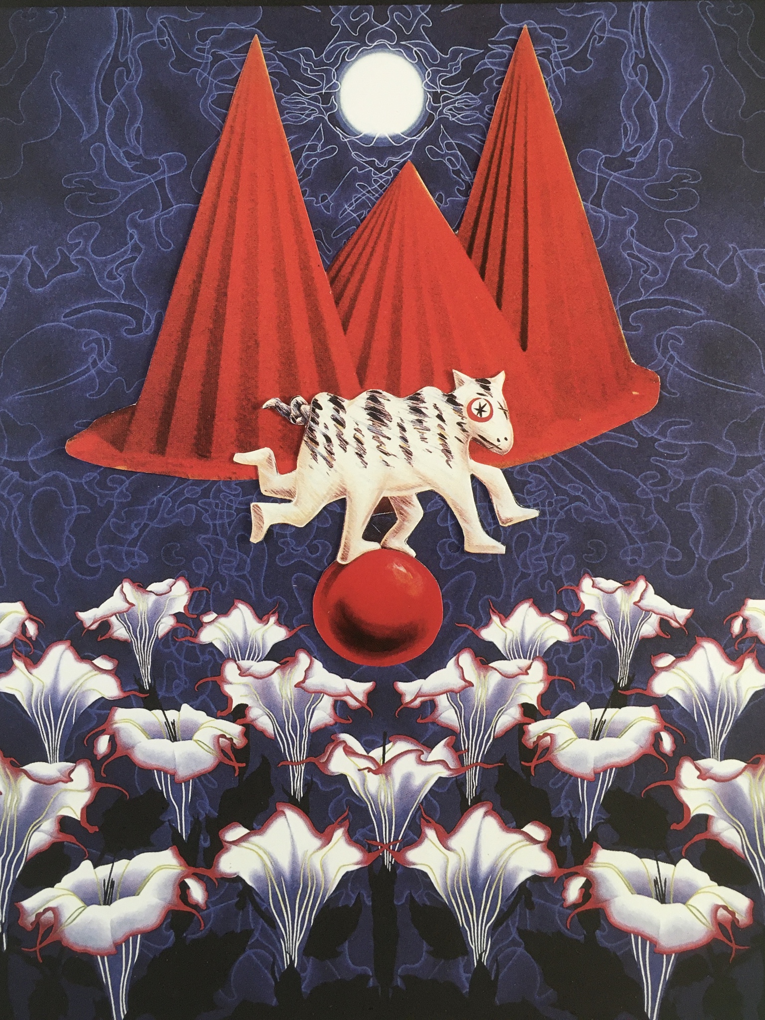 Ik maak tegenwoordig vooral collages en 3D-werk, waarin ik geometrische en figuratieve elementen combineer. Ik werk zonder opgezet plan en laat de beelden al associërend ontstaan.
