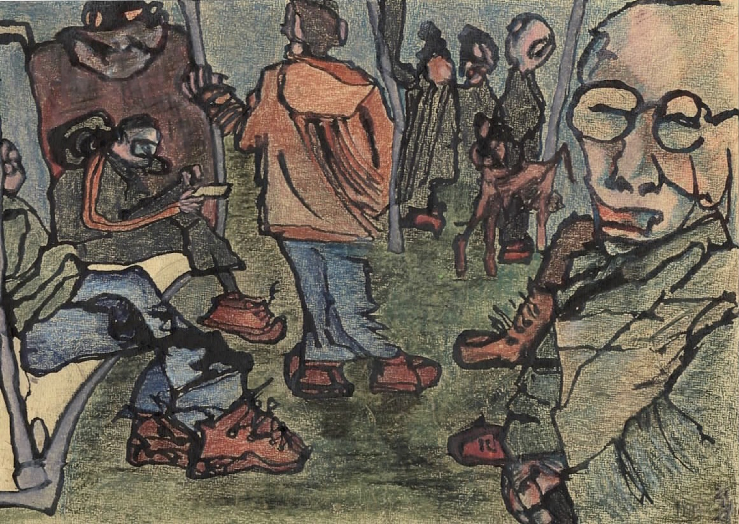 Mixed Media Papier Tekening Crowdscape