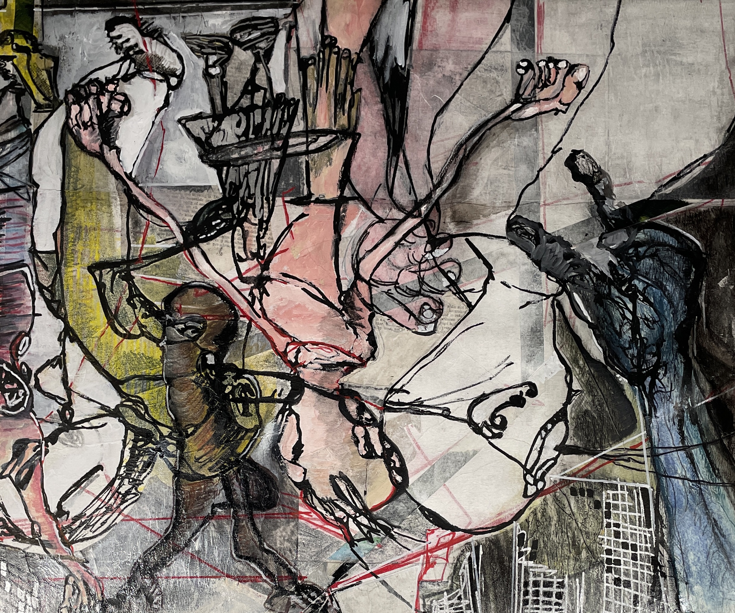 Mixed Media Tekening Doek Crowdscape
