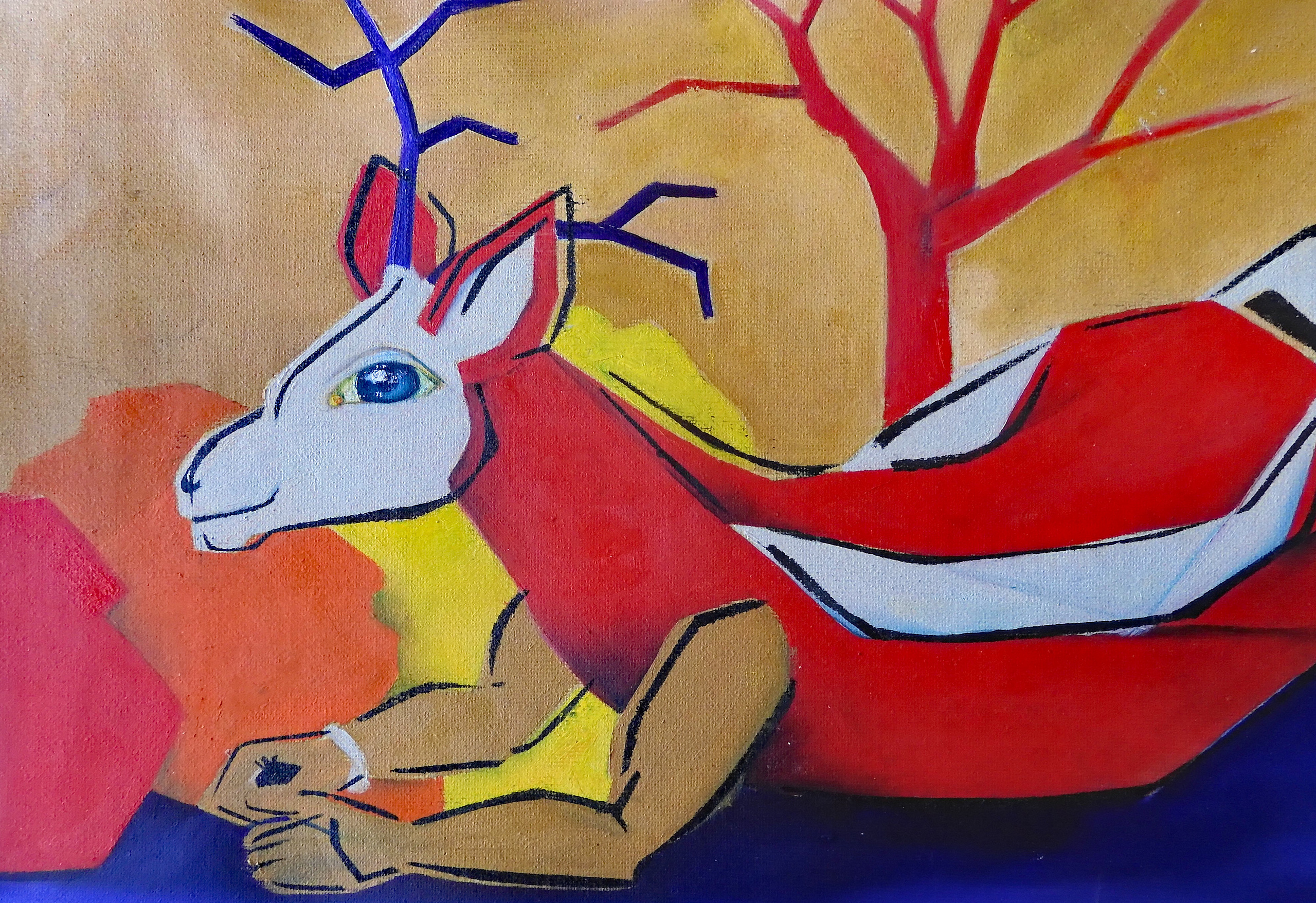 sjabloontechniek dit gekke bees in acryll