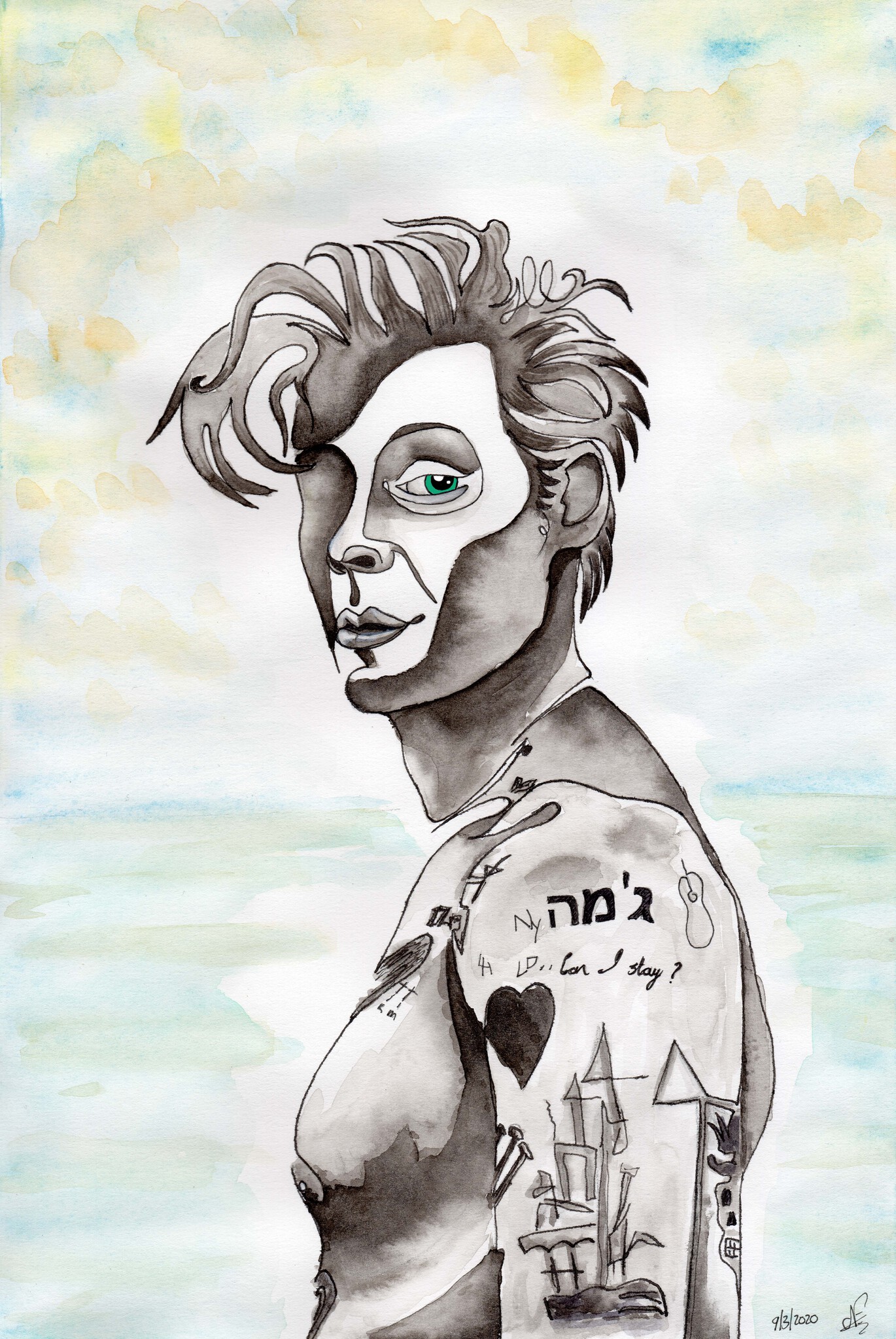 Schilderij Spiritueel Aquarel Tekening Inkt Schaduw Tattoo Harrystyles