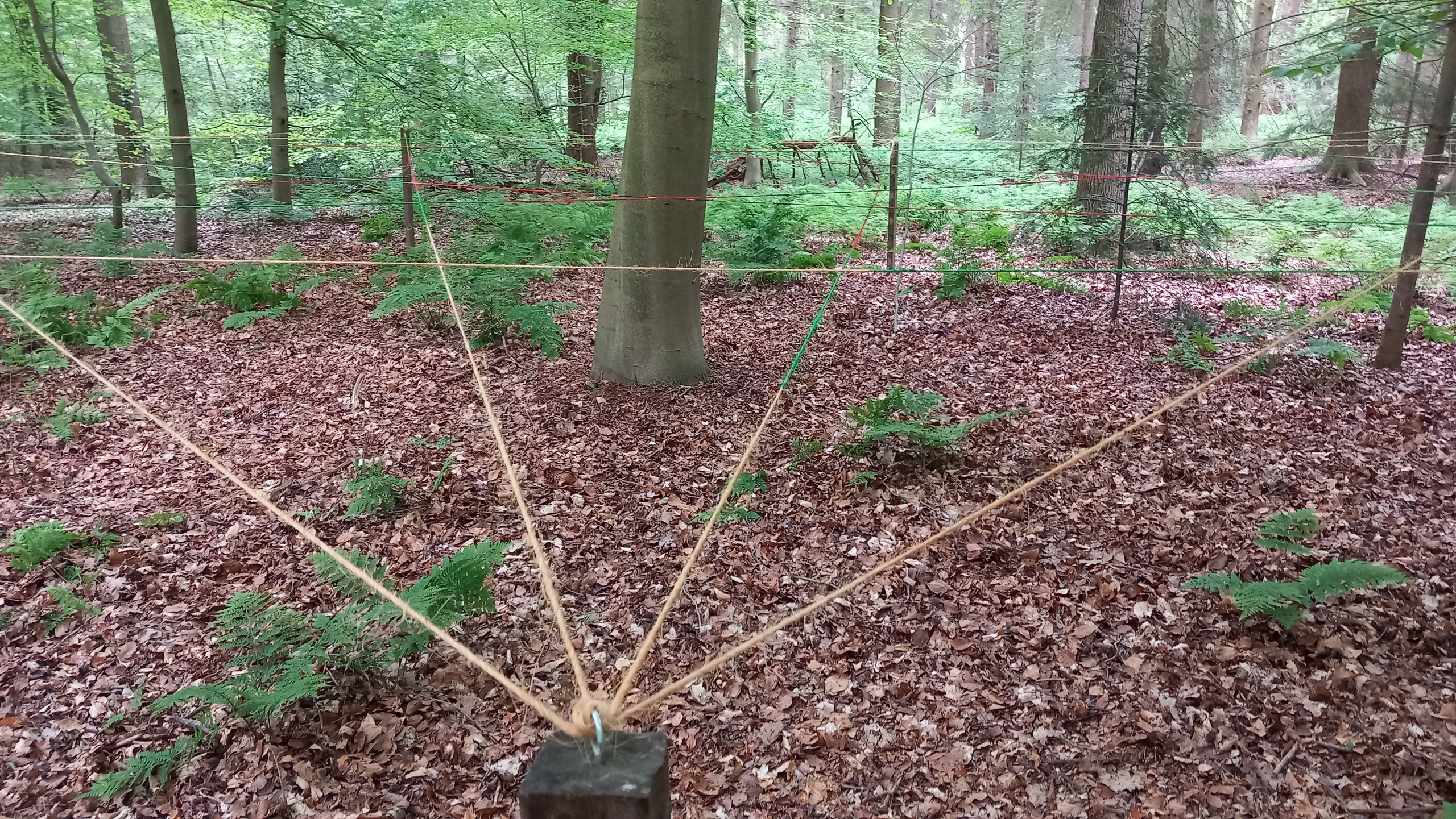 150 meter hangend touw bevestigd aan palen