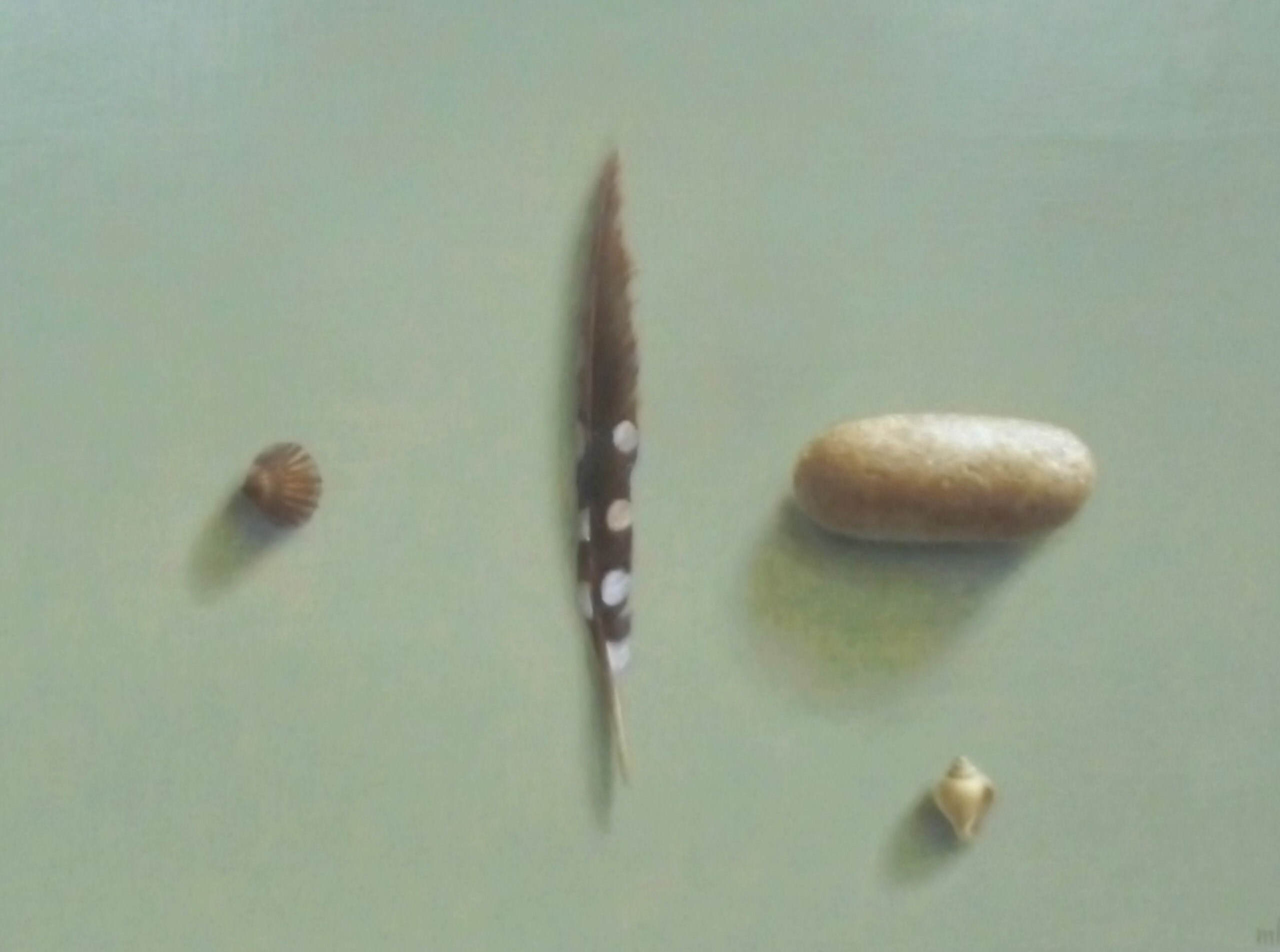 Steen Olieverf Stilleven Schelpen Specht Veer Bonte