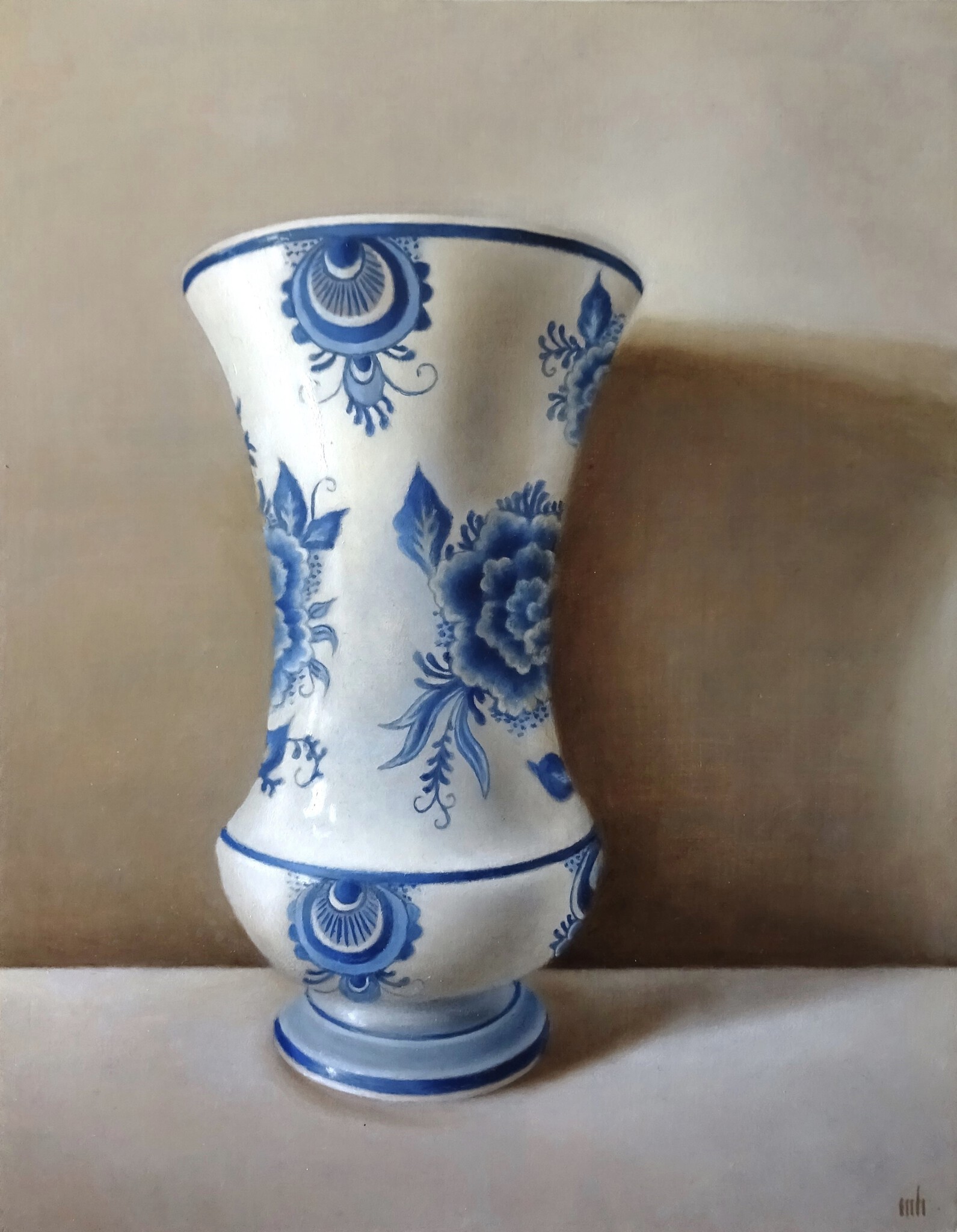Blauw Vaas Realistisch Olieverf Stilleven Delfts