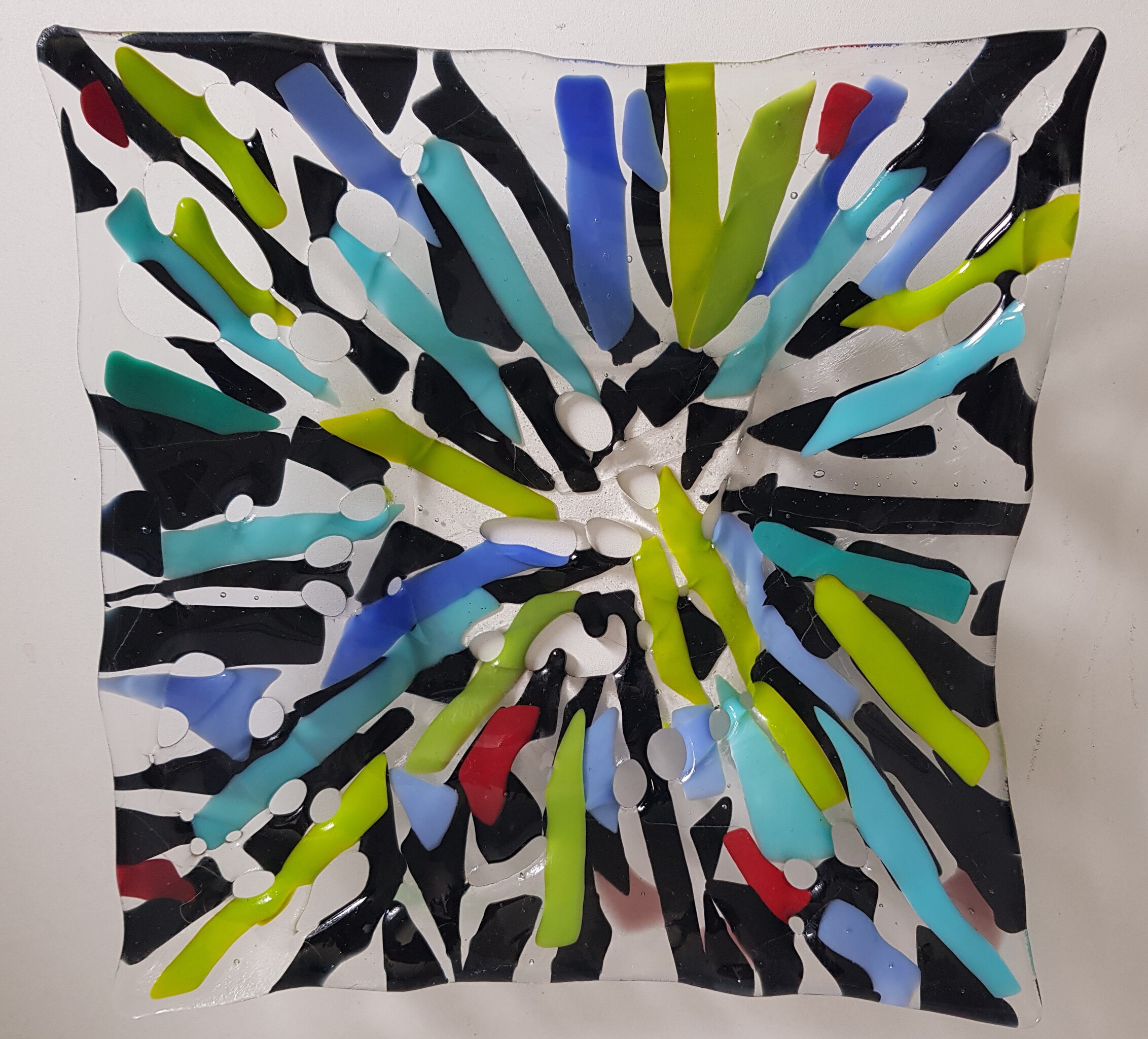 Chaos Vierkante Schaal Glas Zwart Kleuren Madebymirjam Glaskunst