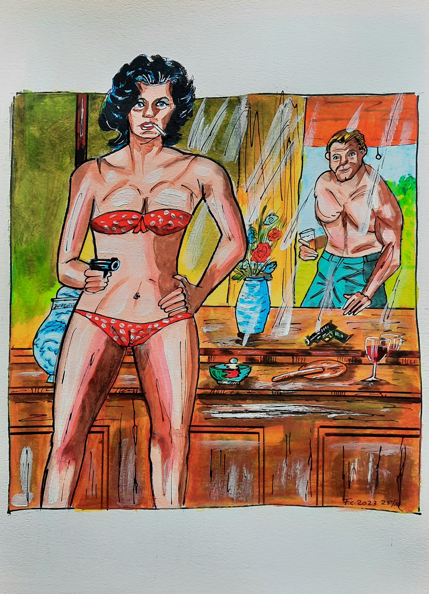 Man Woman Erotiek Retro Guns Pulpart Pulpfiction Lingerie Pulp Art