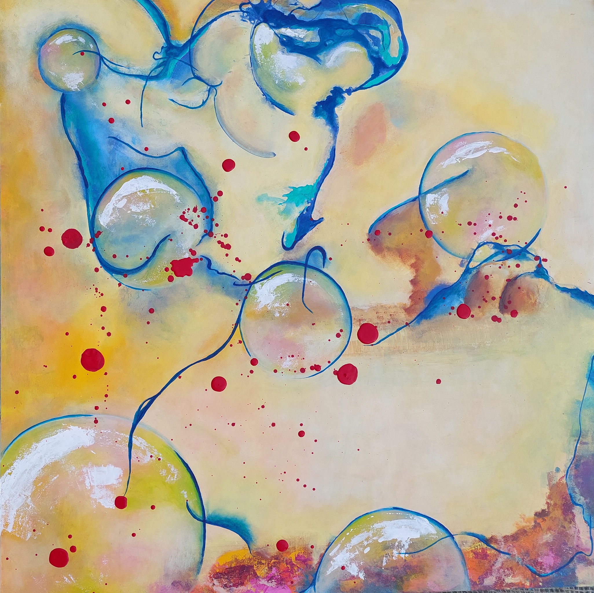 Sinds enkele jaren schilder ik vanuit mijn hart, intuitief ontstaan soms heel bijzondere elementen in mijn werk. Aan mij om dat wat verschijnt de aandacht te geven en het geheel te verbinden.