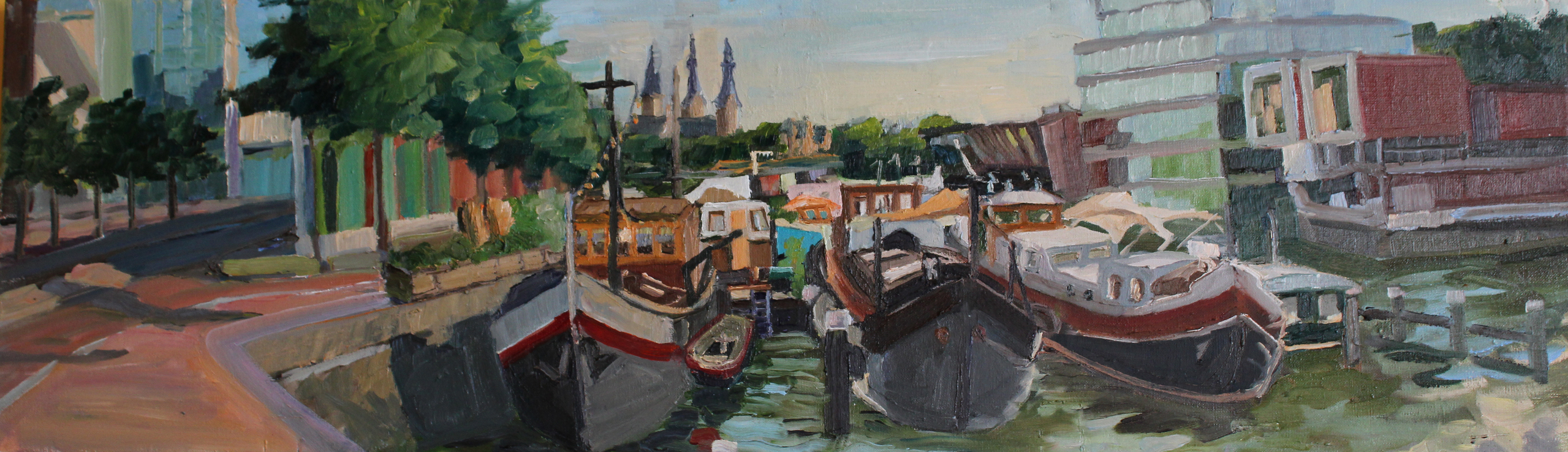Water Amsterdam Stad Huizen Stadsgezicht Boot Flats Boten Woning Woonboten Woonboot Stadsschilderij Posthoormkerk
