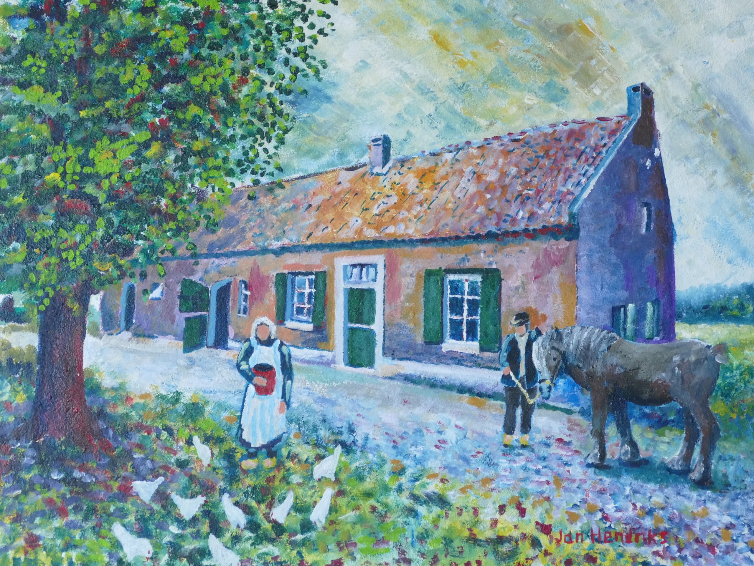 Gebaseerd op zwart-wit foto uit 1972. Boerderij ligt aan de Brumholt.