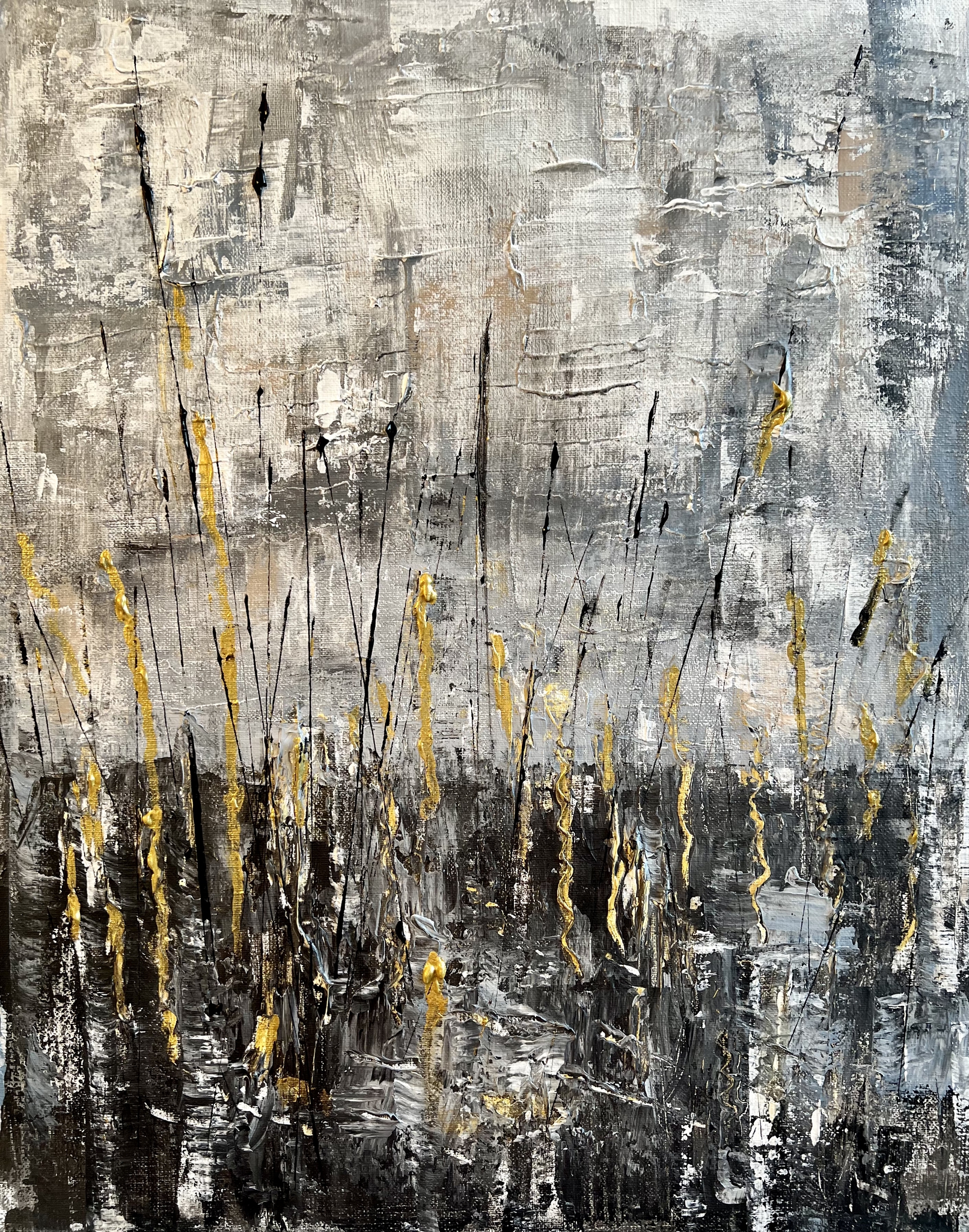 Wit Abstract Zwart Acryl Goud Winter Plas