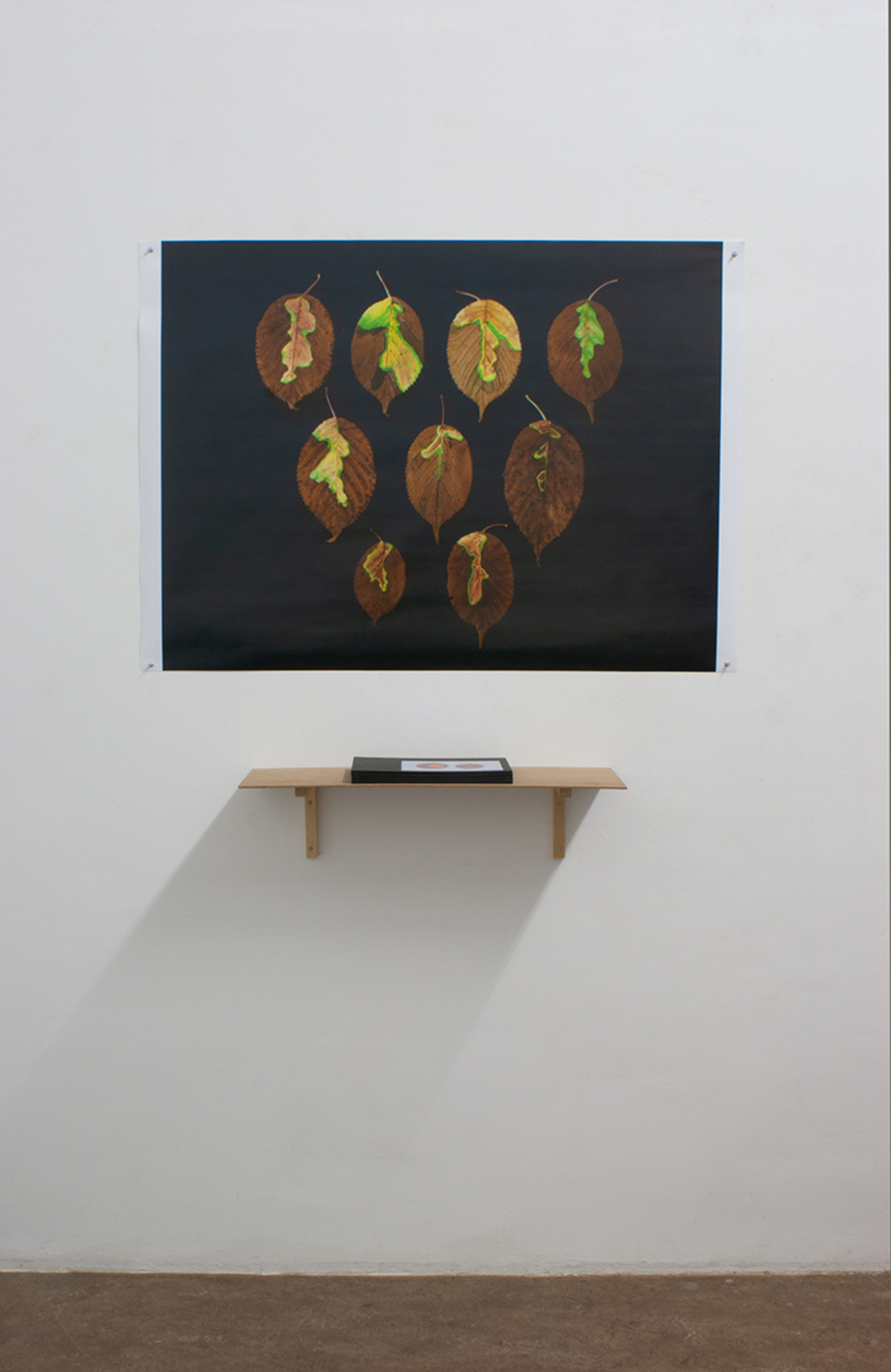 Foto en leporello met foto's Foto's van herfstbladeren die patronen vertonen die zeer ongewoon zijn door de zeer droge zomer en herfst van 2022