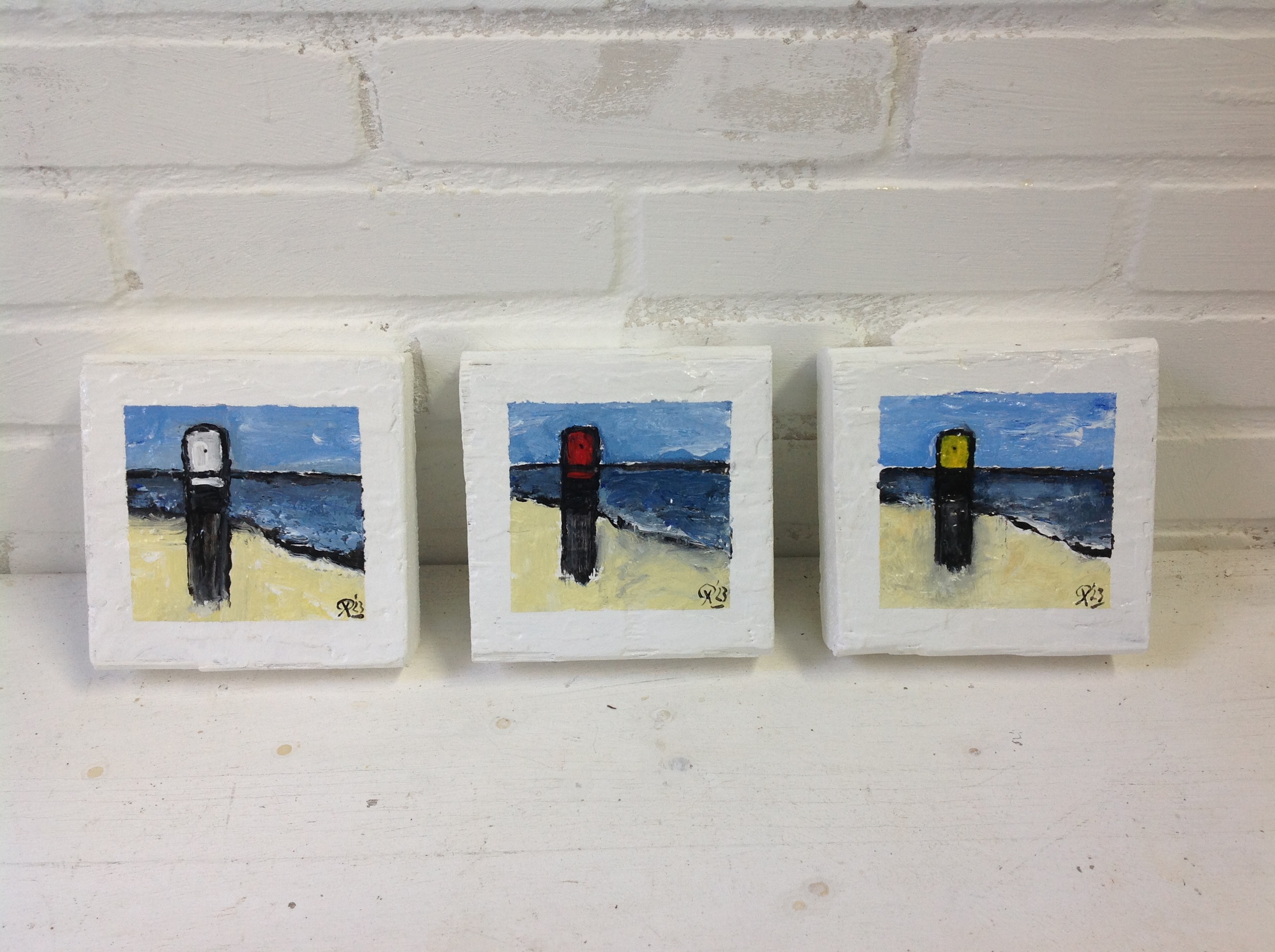 Texels drieluik. Karakteristieke strandpalen. 15 x 15 x 5 cm. VERKOCHT.
