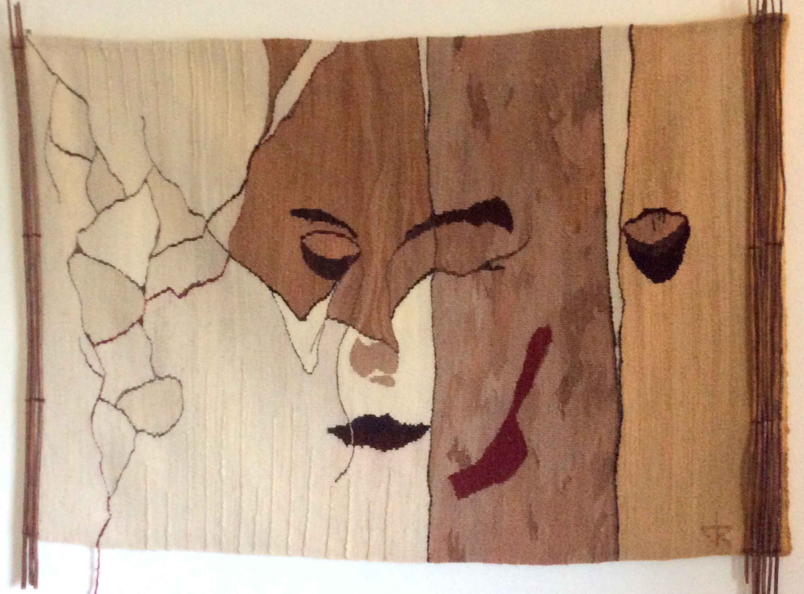 Mijn wandkleden worden gemaakt van schapenwol die ik zelf spin, waarna ik deze verf met plantaardige materialen , zoals indigo, meekrap en fustic. De techniek is inlegwerk op 2 schachten.