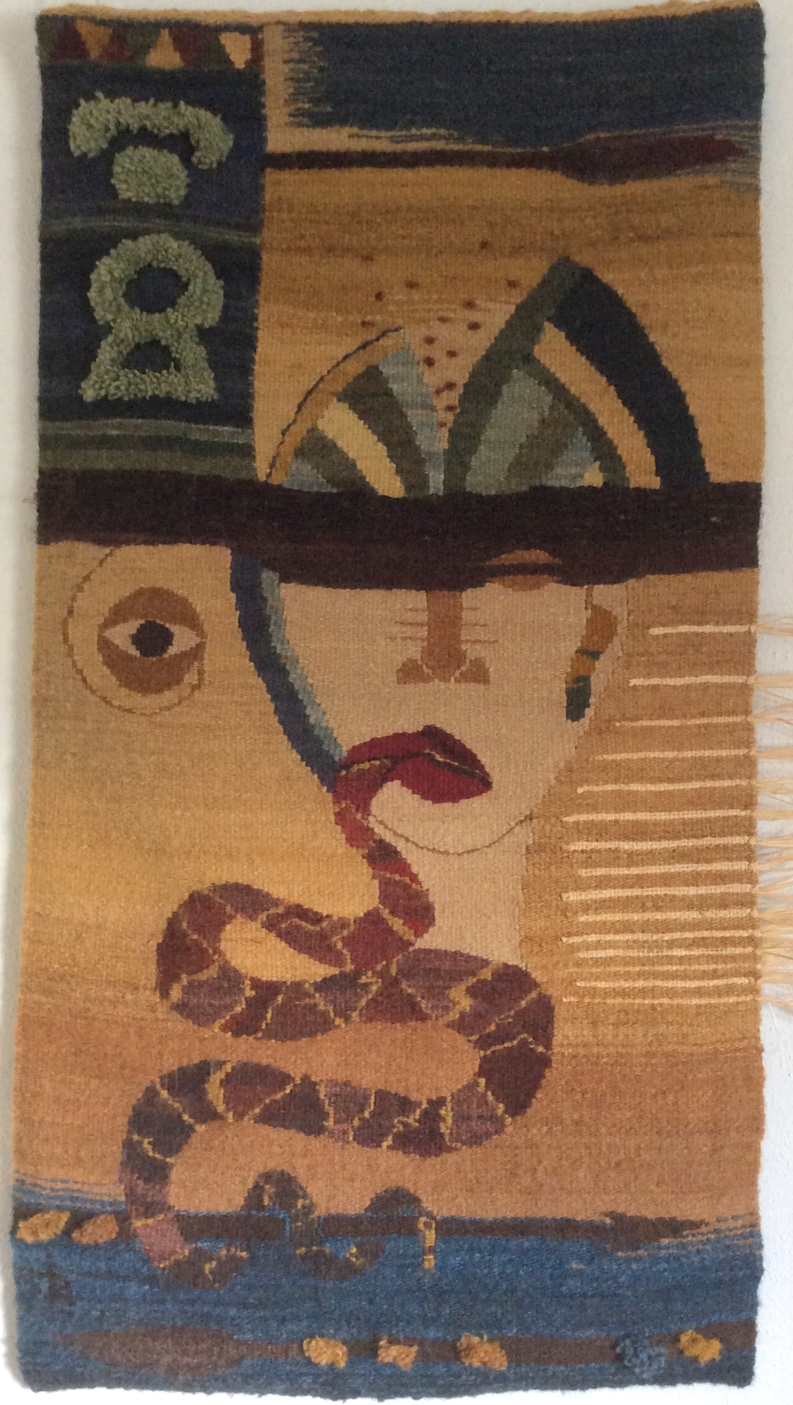Mijn wandkleden worden gemaakt van schapenwol die ik zelf spin, waarna ik deze verf met plantaardige materialen , zoals indigo, meekrap en fustic. De techniek is inlegwerk op 2 schachten.