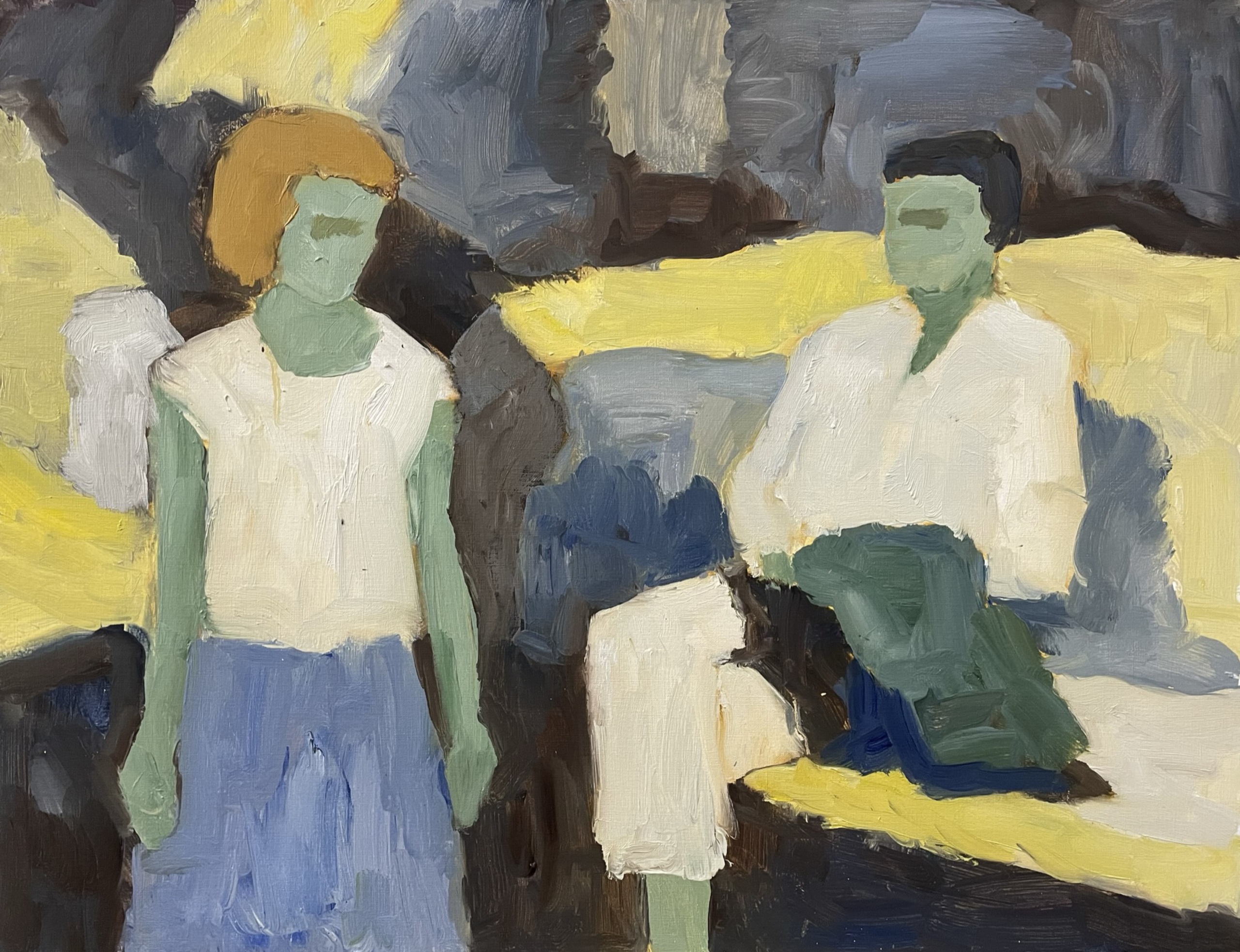 Ik schilder graag mensen in allerlei situaties, binnen of buiten.