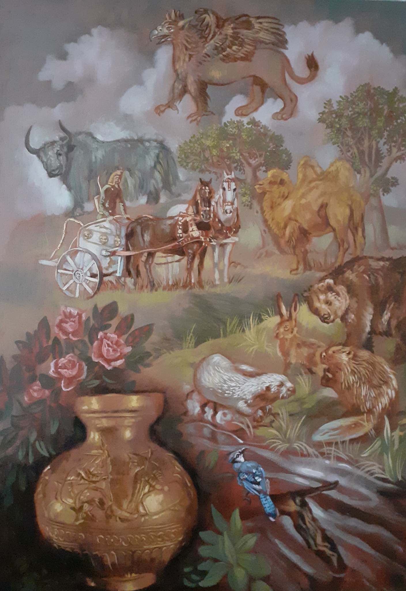 Figuratief Realistisch Landschap Griffioen Scythen Wagenmenner Dieren Otter Beer Bever Haas Yak Kameel Olieverf