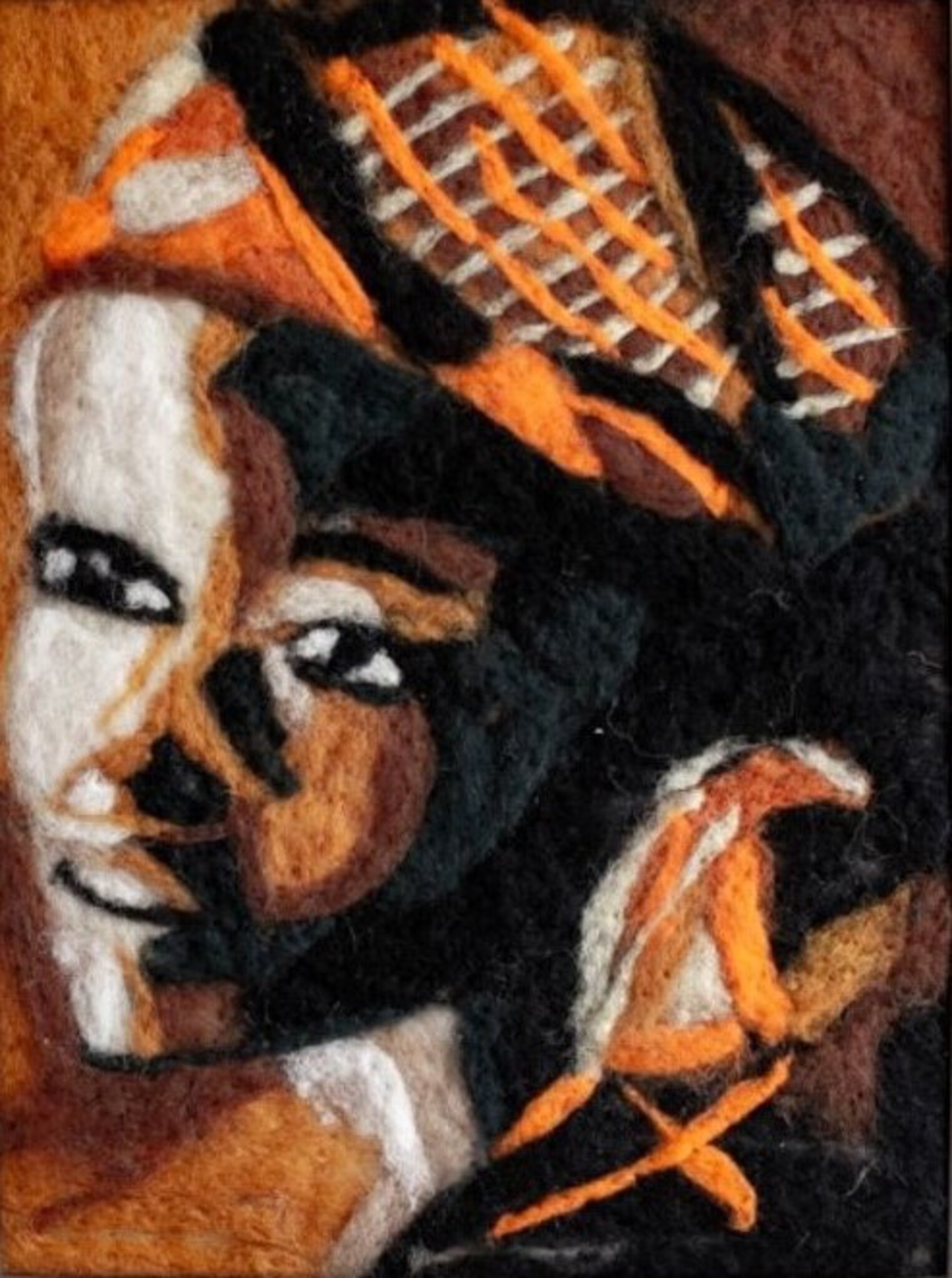 Als kind ben ik opgegroeid in Afrika ( Burkina faso) en ik vind dat een positief beeld van Afrika schetsen ook belangrijk is.Aan de portretten gaat eerst een pastelkrijttekening aan vooraf. Het kleurgebruik is voor mij het belangrijkst. Naaldvilten is net als schilderen. Je werkt laag voor laag.!