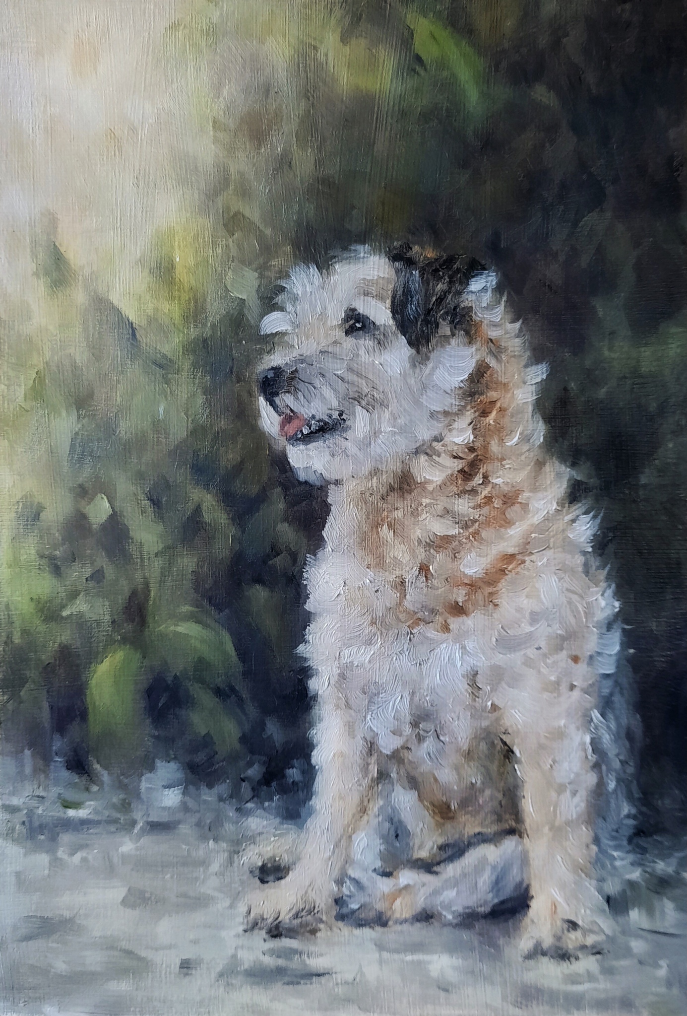 Schilderij Portret Olieverf Hond Huisdier Terrier Border Dierenliefde