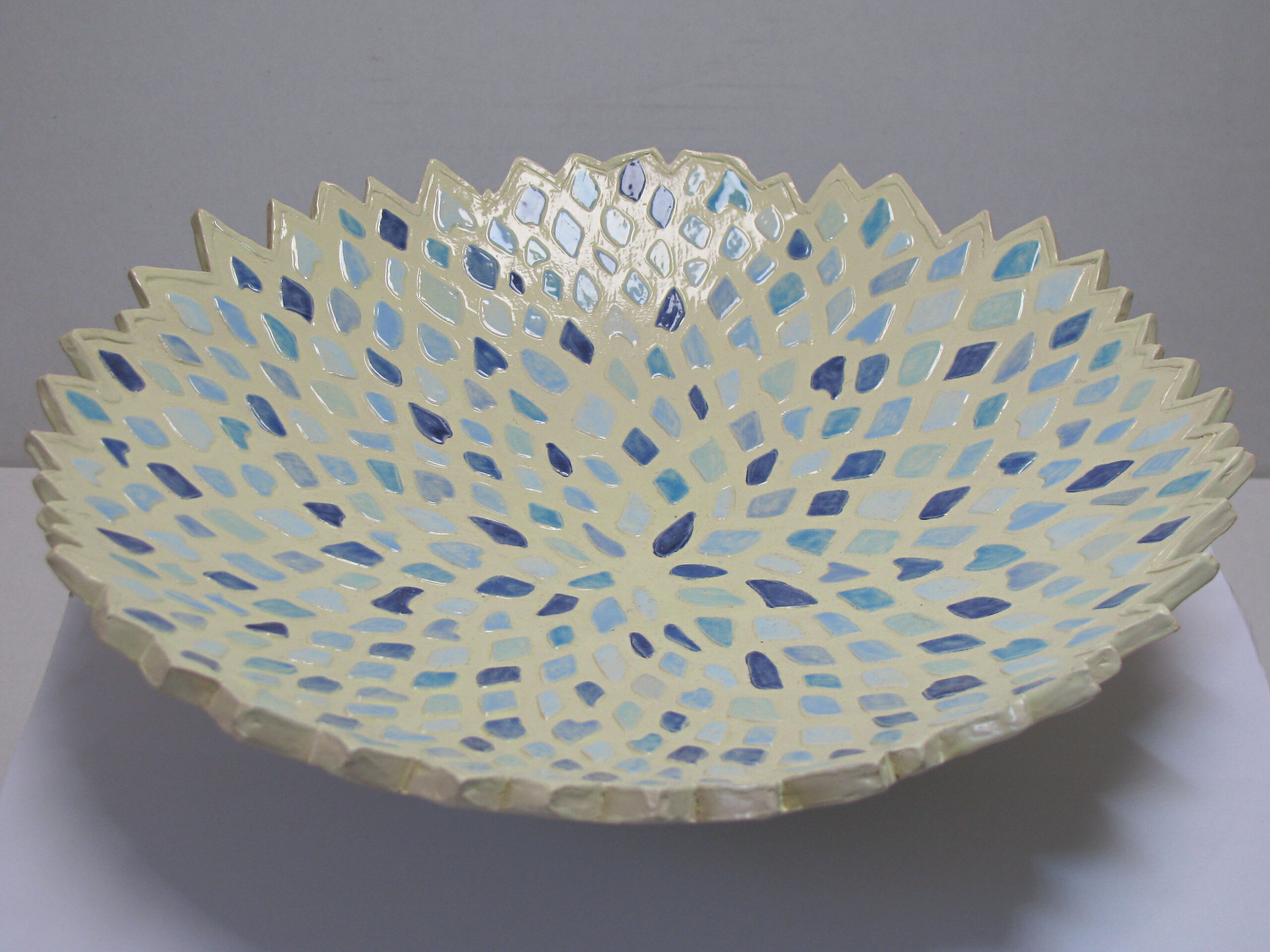 Blauw Water Schaal Klei Relief Chamotteklei Riann