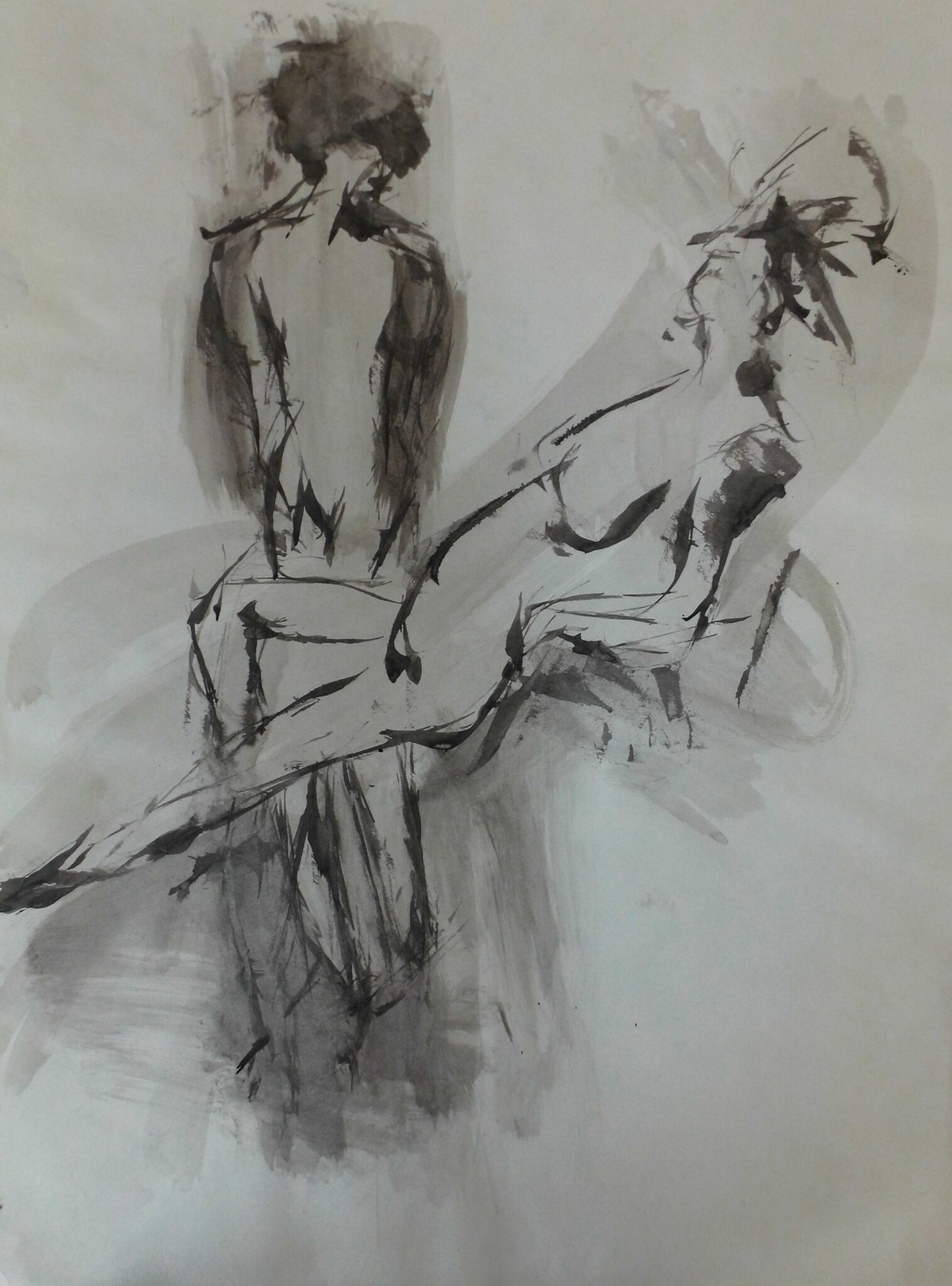Inkt Minimalistisch Naar Getekend Naaktmodel Pakpapier Gewassen Waarneming Satéstokje