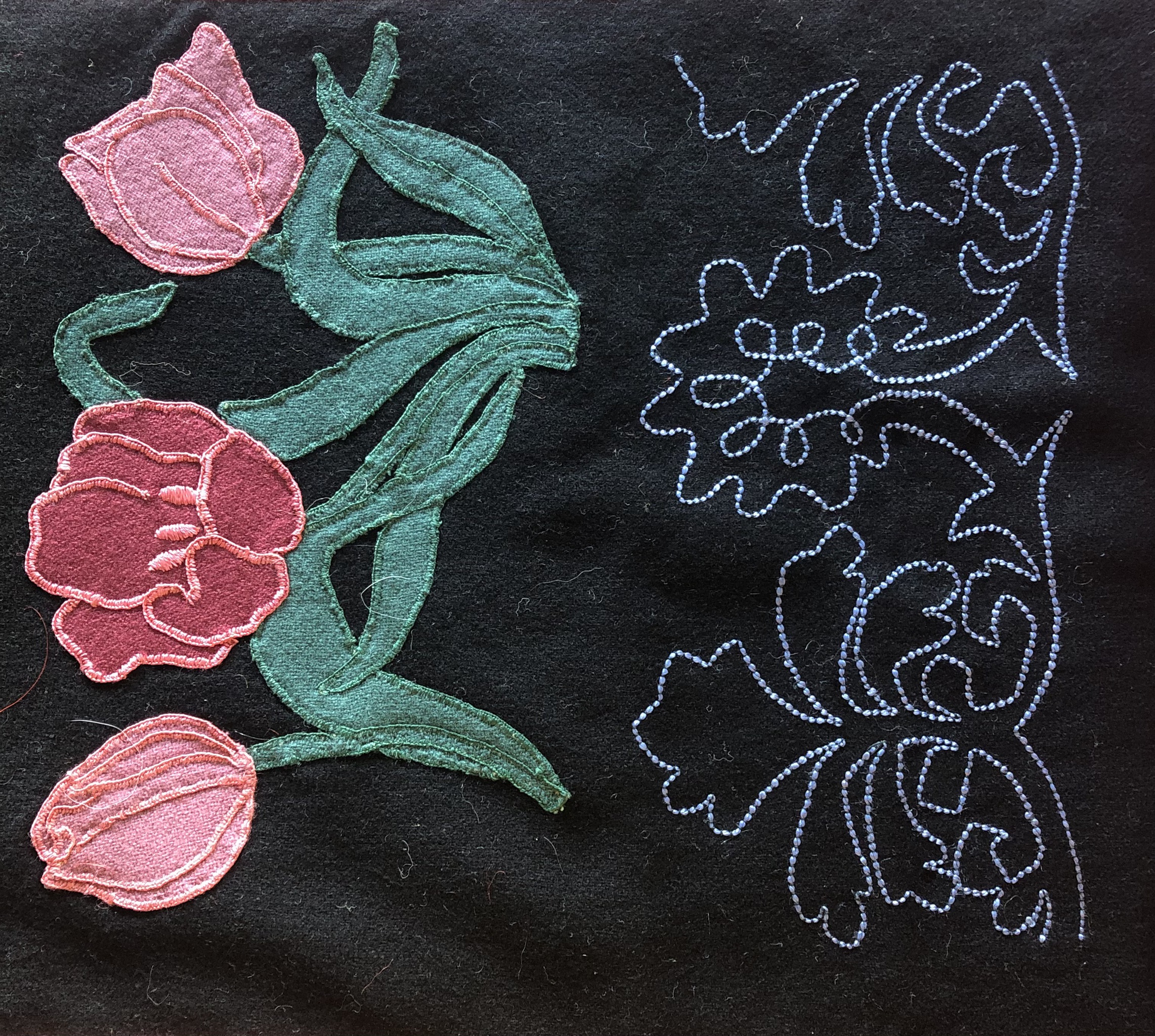 Eindopdracht textielopleiding tulpen applicatie en lijnborduursel