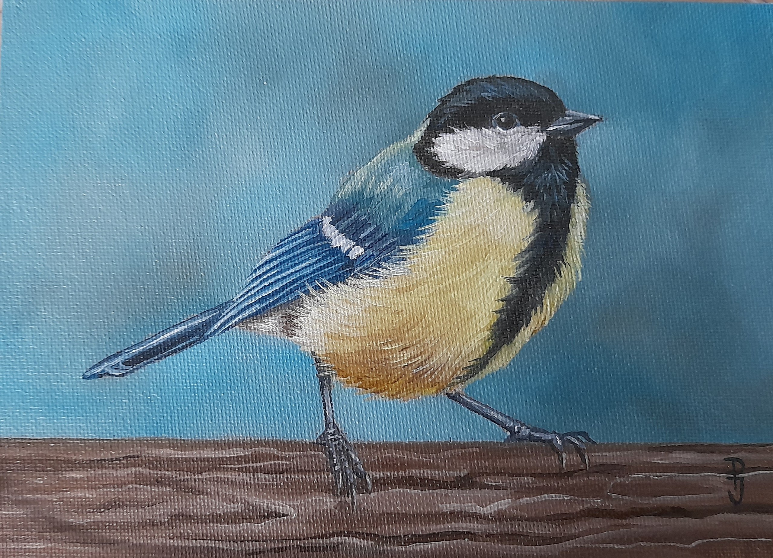 Schilderij Olieverf Koolmees Vogelschilderij